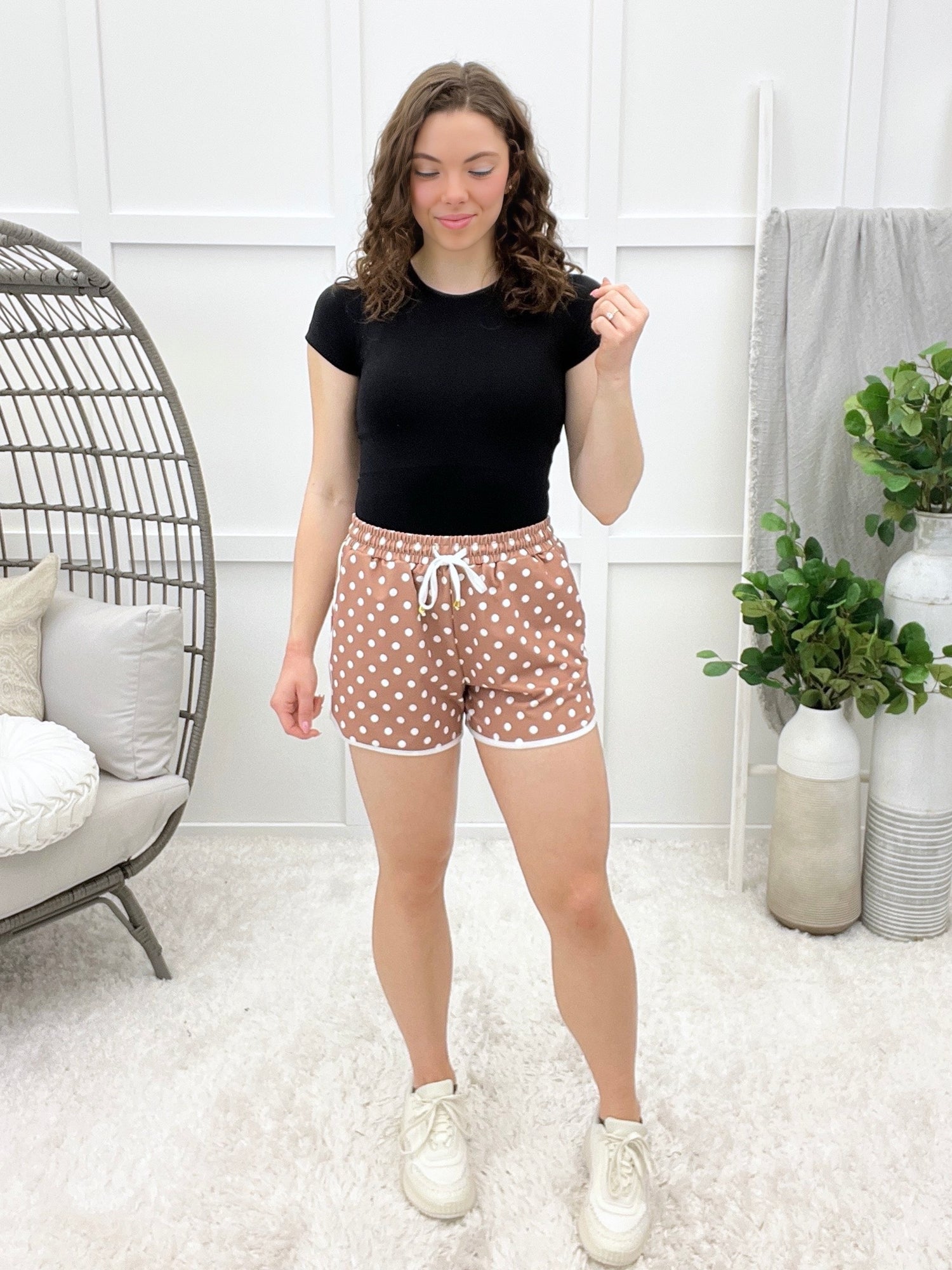Step into effortless charm with these shorts, where cozy meets cute. The playful polka dot pattern pops against the rich color adds a fresh finishing touch. Whether you're kicking back at home or heading out for casual adventures, these shorts deliver all the comfort and personality your wardrobe needs. Pure joy in every wear.