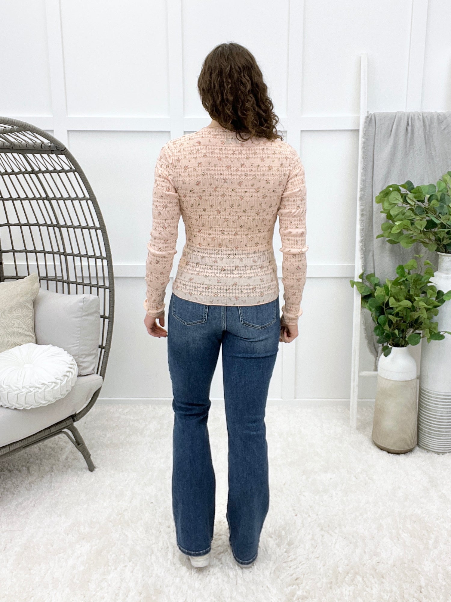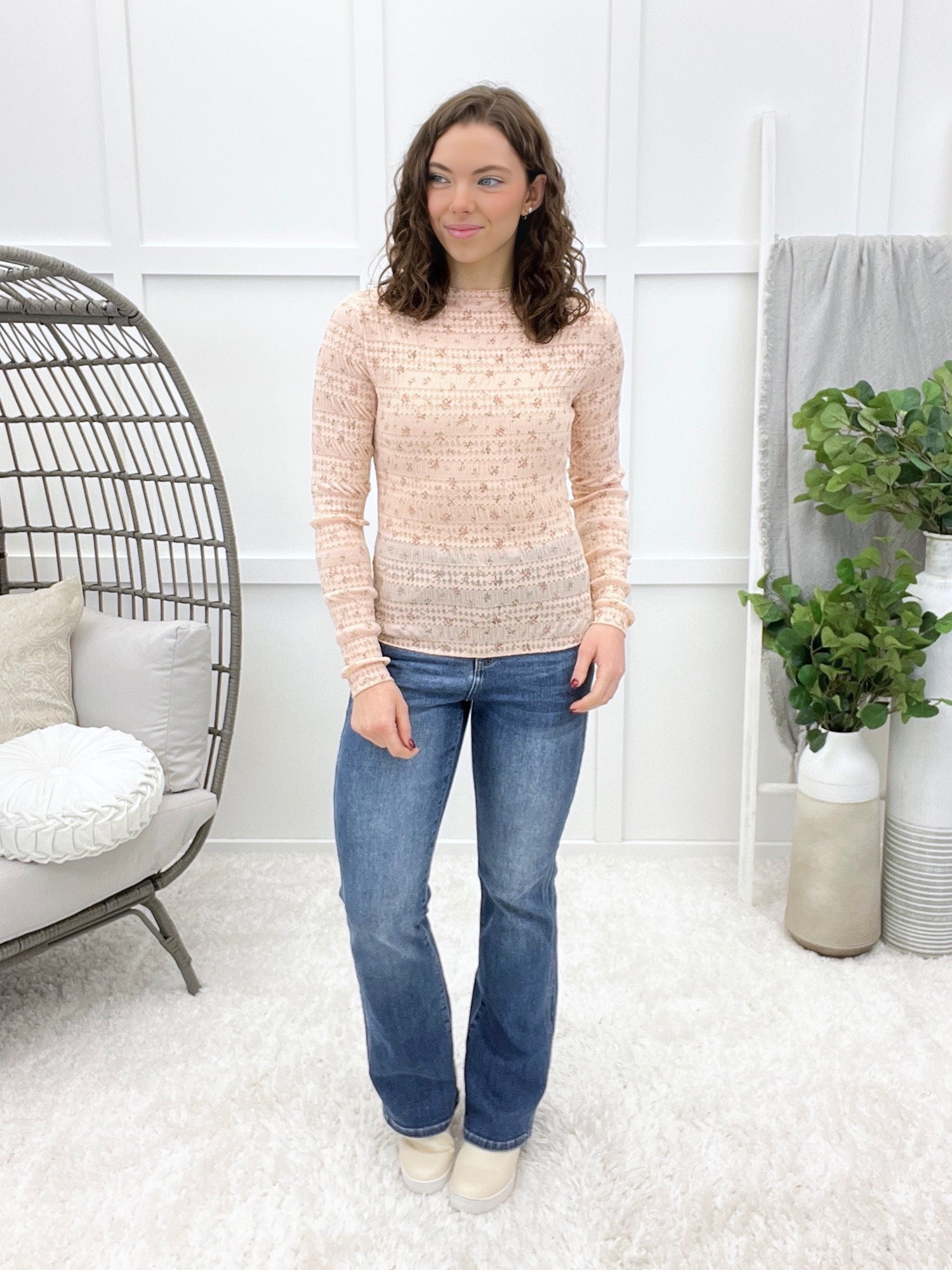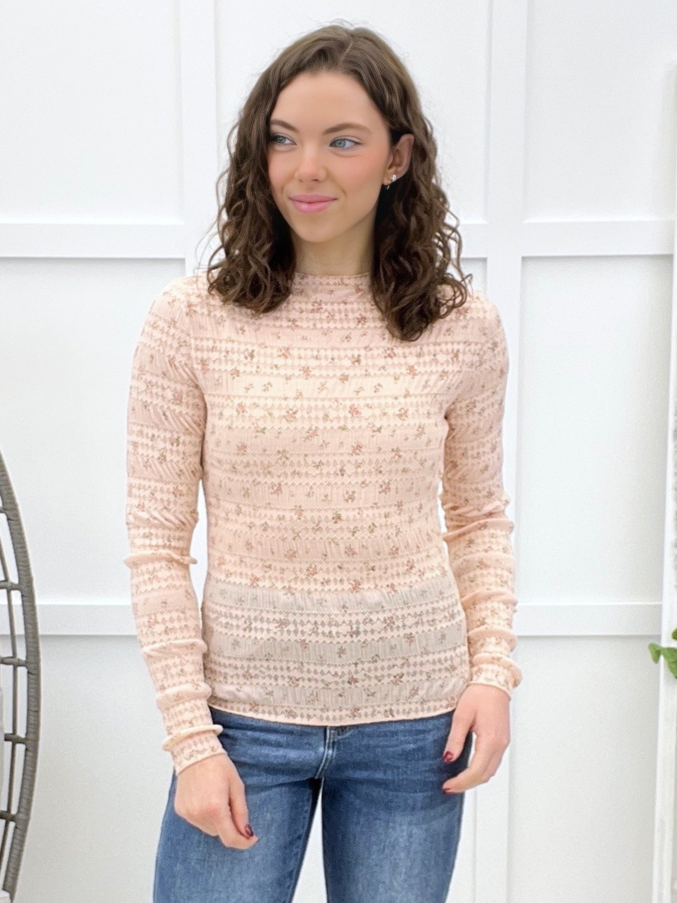 Embrace your sweet side in this charming floral print knit top! Featuring a classic mock neck and cozy long sleeves, it's the perfect piece for layering or wearing solo. The delicate floral design brings a touch of charm to your everyday wardrobe, while the soft knit fabric keeps you comfortable all day long. Whether you're heading to brunch or a casual weekend outing, this top pairs effortlessly with your favorite jeans or skirts for an instantly put-together look.