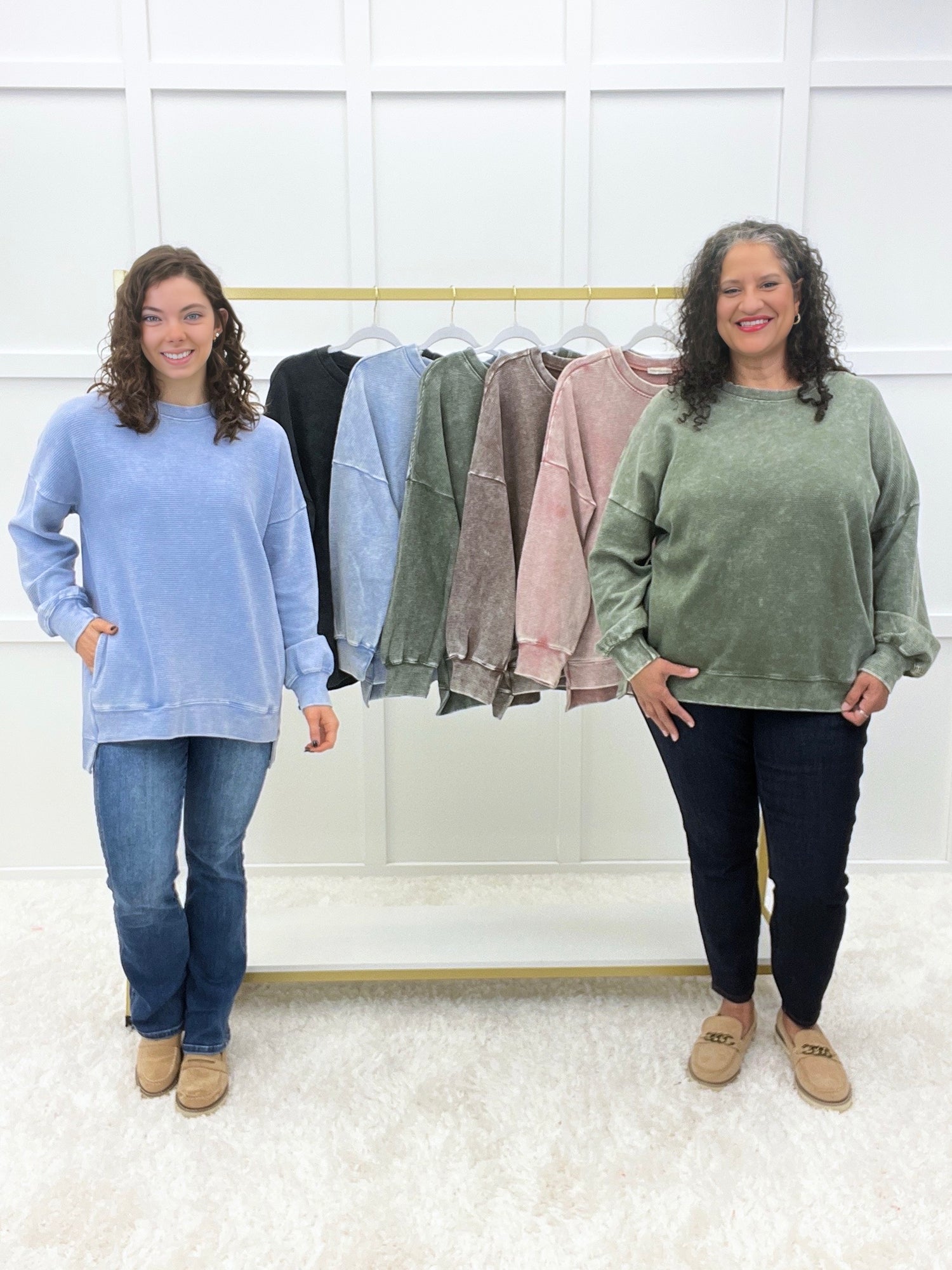 A vintage wash meets modern comfort in this acid washed pullover top. Designed with a ribbed texture, hi-low hem, and side pockets, it offers a laid-back silhouette that’s easy to style. Layer it under your favorite jacket or wear it solo for a relaxed, street-chic finish.
