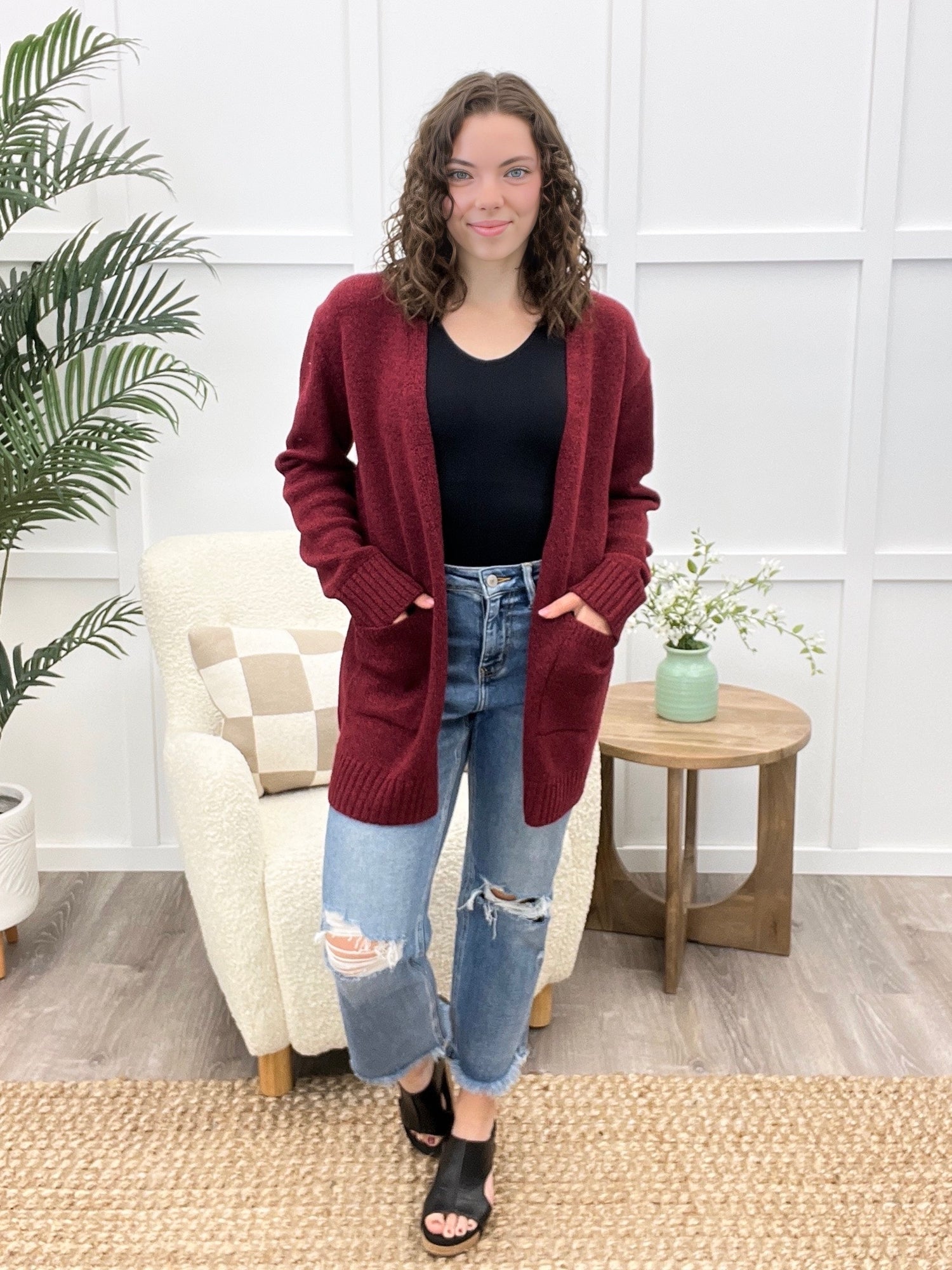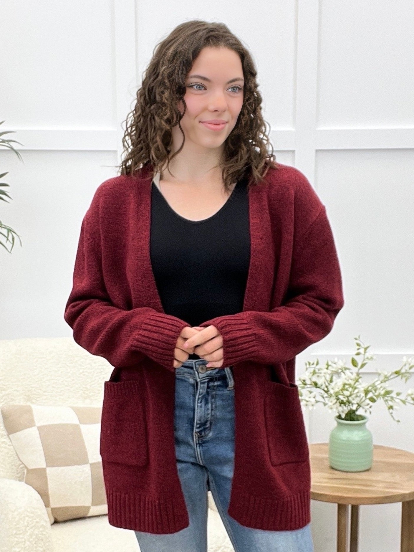 Stay cozy and stylish with the Catch A Groove Cardigan. This open-front sweater features handy front pockets, perfect for keeping your hands warm or stashing little essentials. Its relaxed fit makes it easy to layer over your favorite outfits, adding a playful touch to your everyday look.