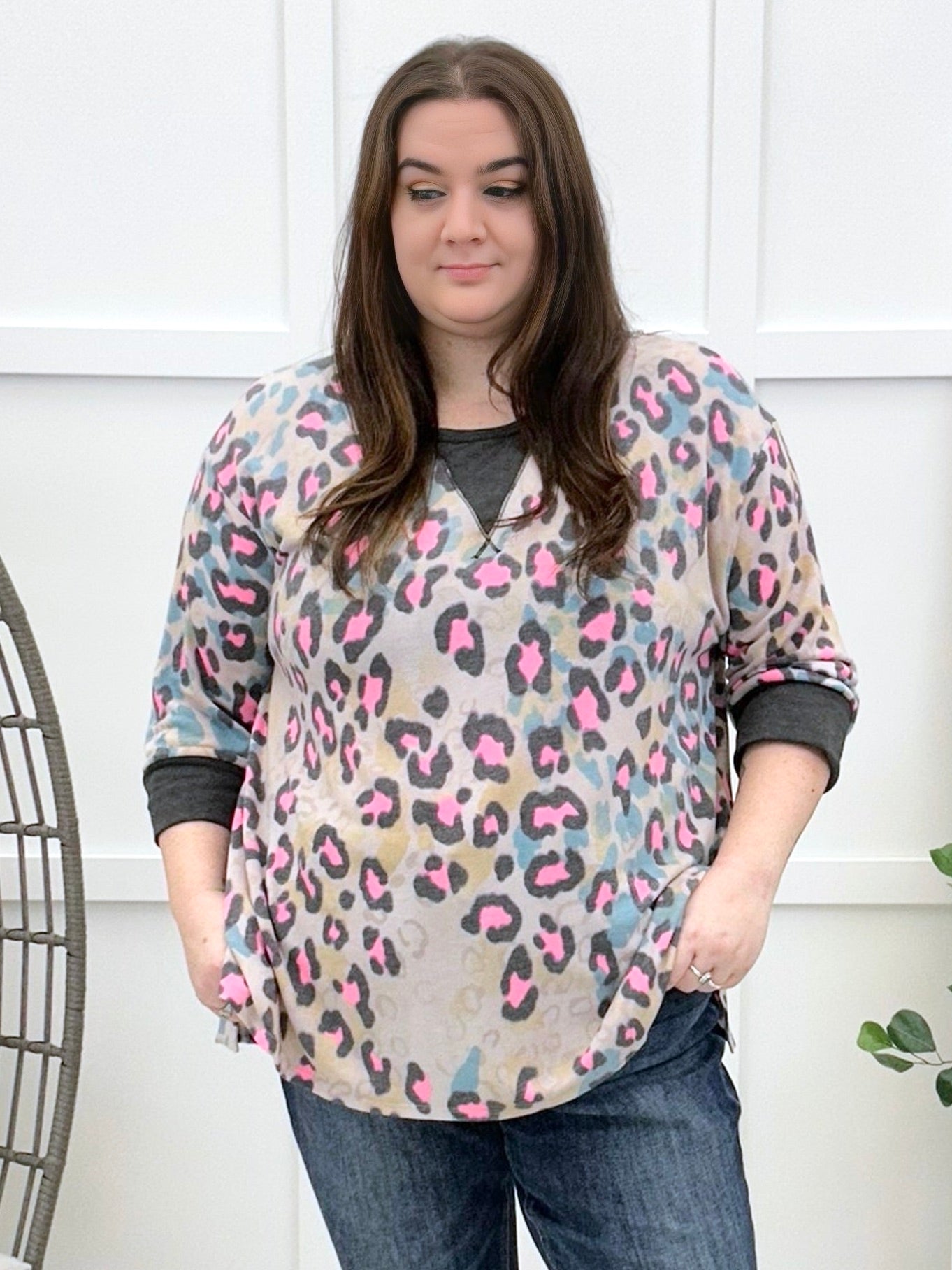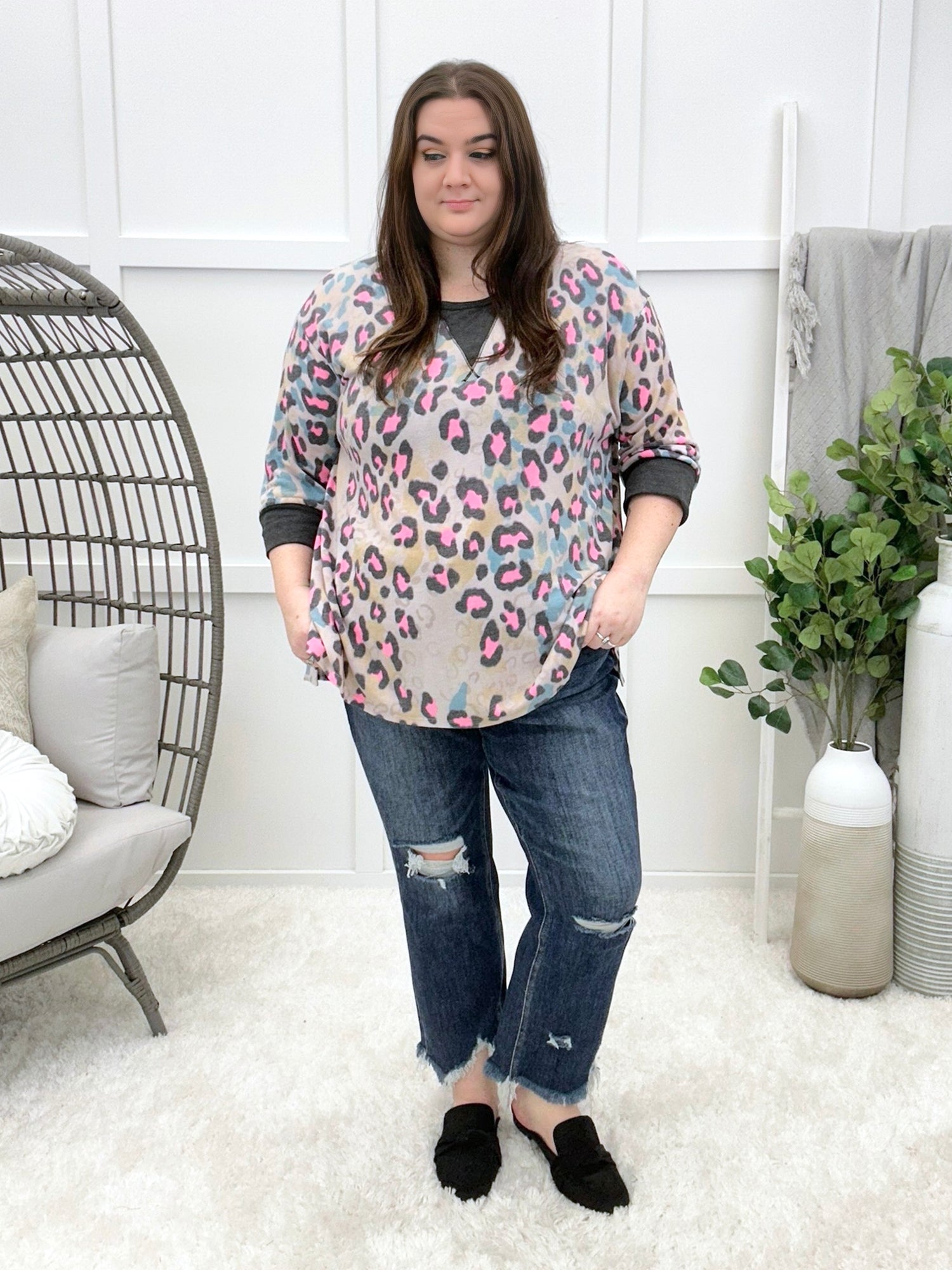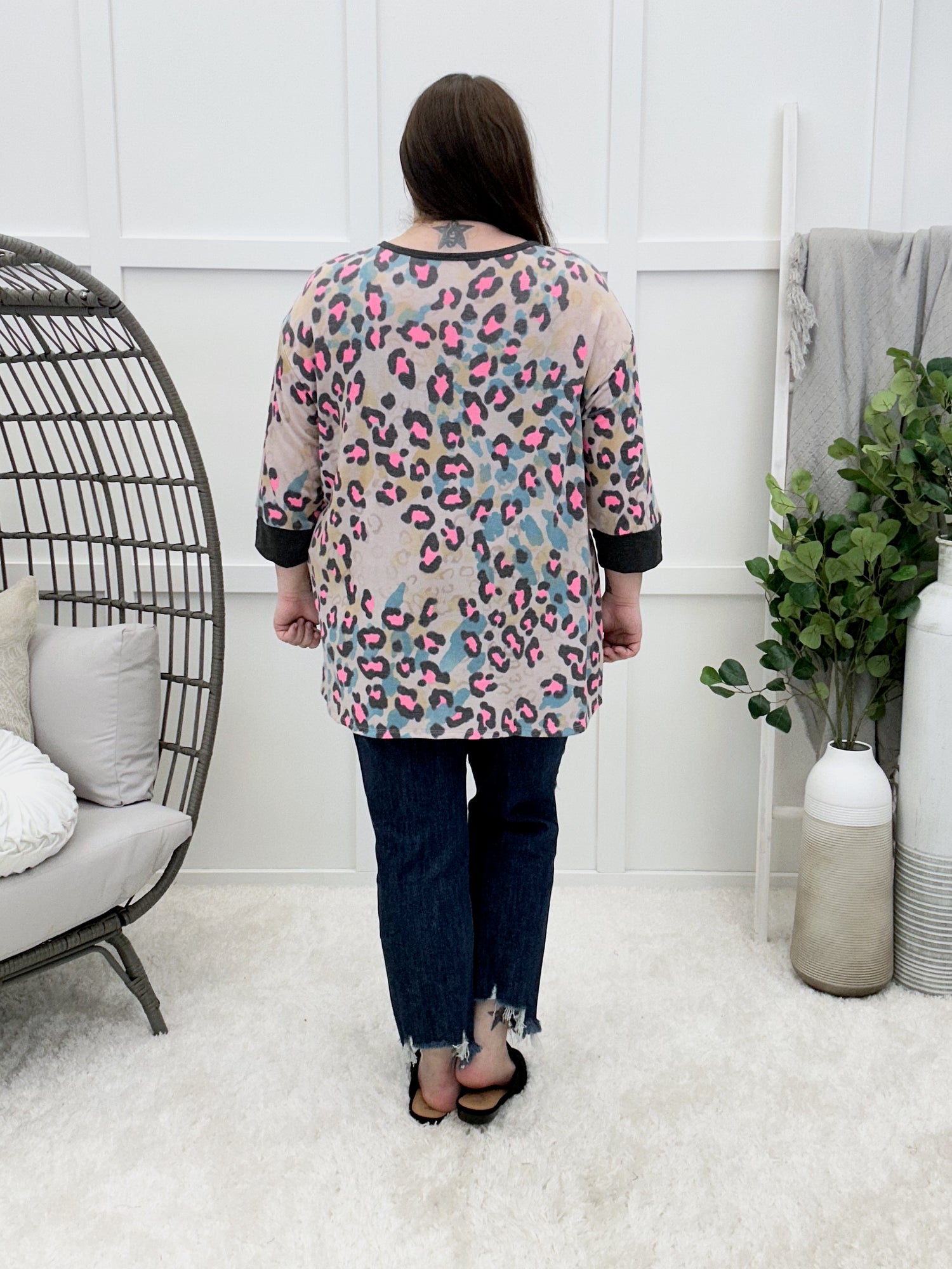 Unleash your playful side with this colorful leopard print top! The vibrant animal print and classic V-neck make it a fun and fashionable statement piece for any day of the week. Perfect for adding a pop of personality to your look, you can pair it with your favorite denim and a pair of white sneakers for a day of running errands or a casual brunch.