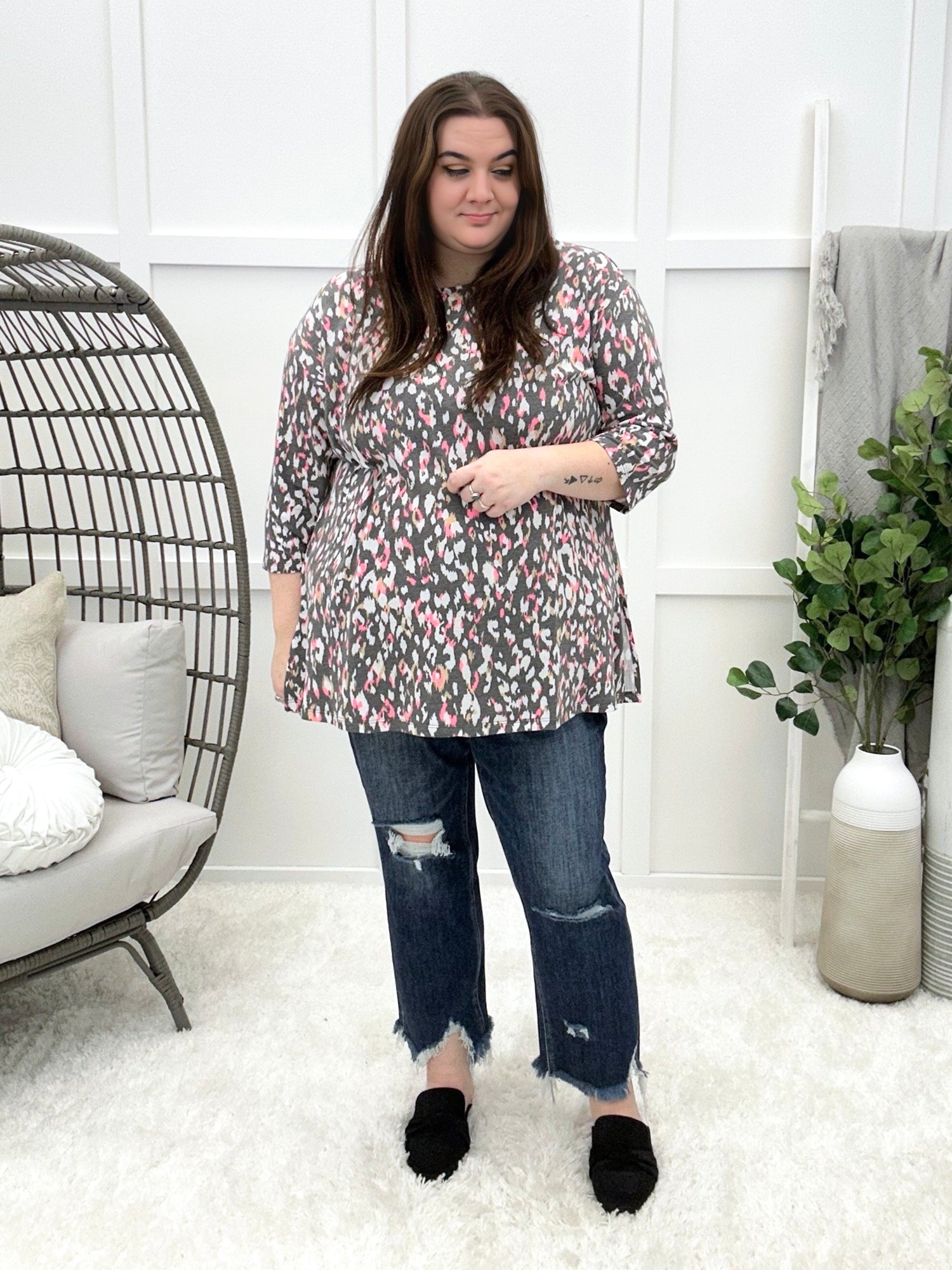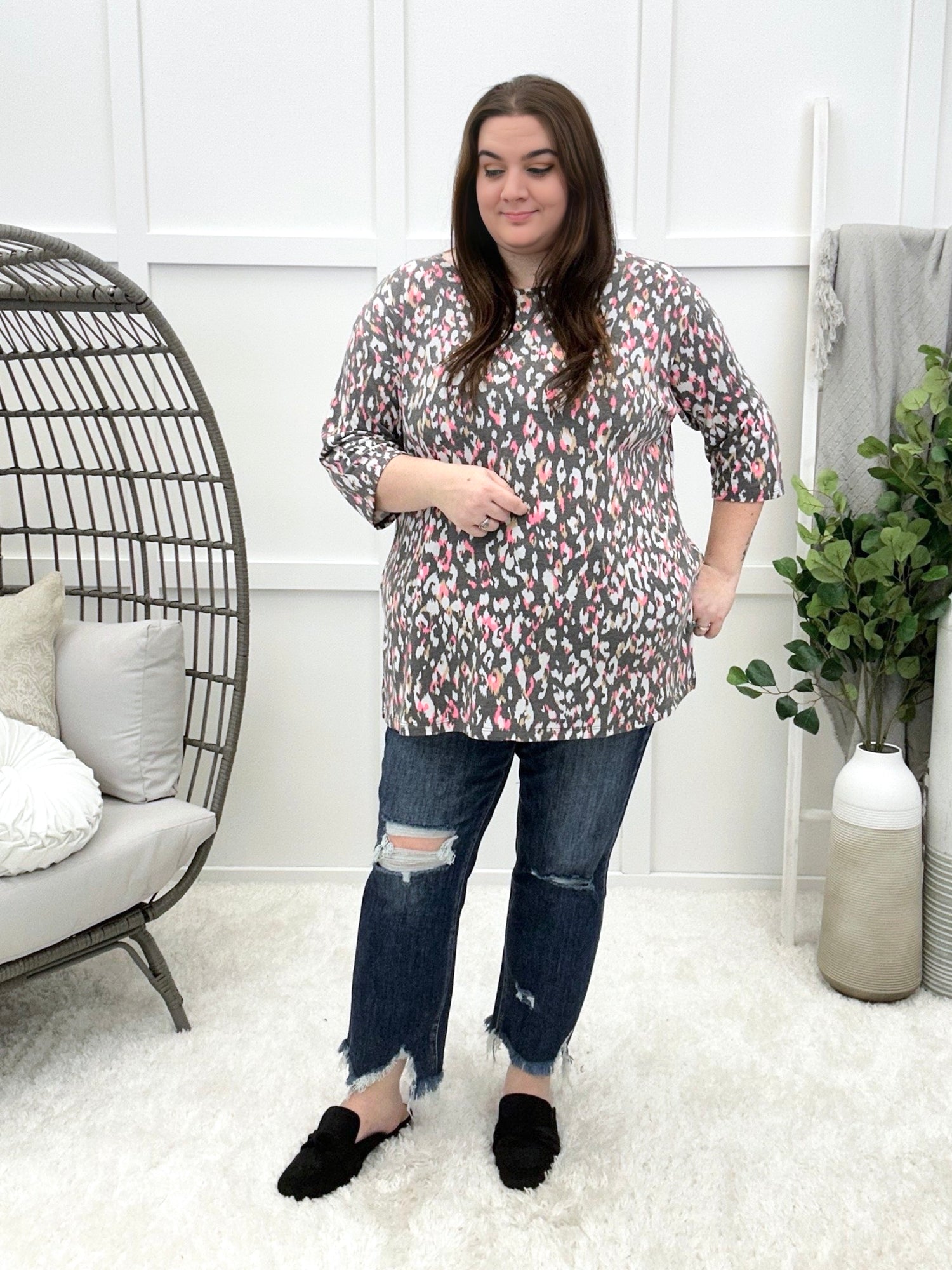 Bring subtle drama to your casual rotation with this effortlessly chic tunic top. The comfortable, relaxed fit and appealing abstract leopard print make it a sophisticated yet easy choice for any outing. Pair this versatile piece with fitted black trousers and heels for a comfortable day at the office, or wear it with denim shorts and sandals for a laid-back weekend market stroll.