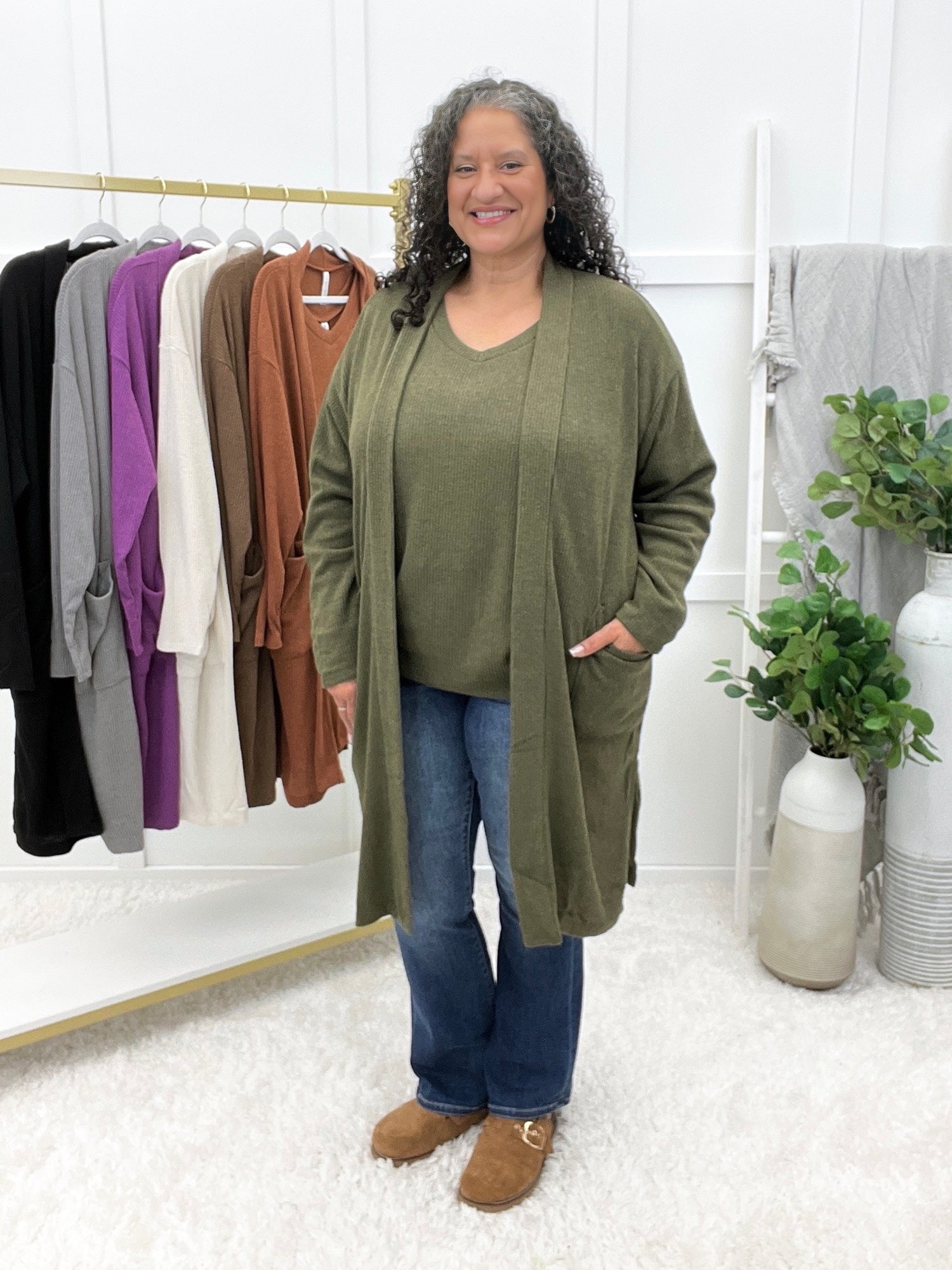 Get ready to cozy up in style with this absolutely dreamy two-piece set, featuring a comfortable long-sleeve top and a super chic long cardigan! It's the ultimate combination for effortless layering and looking fabulous, whether you're relaxing at home or out on the town!