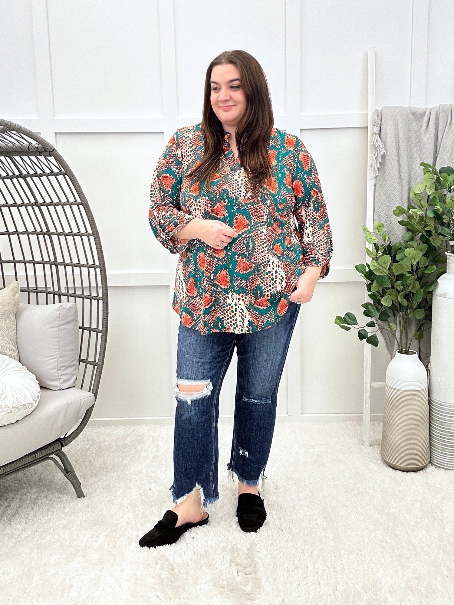This wrinkle-free top is all about effortless charm with its crisp mandarin collar, subtle puffed sleeves, and delicate smocked cuffs. The long sleeves add a polished touch, while the relaxed fit keeps it comfy all day. Pair it with tailored pants for the office or denim for a dressed-up casual vibe!