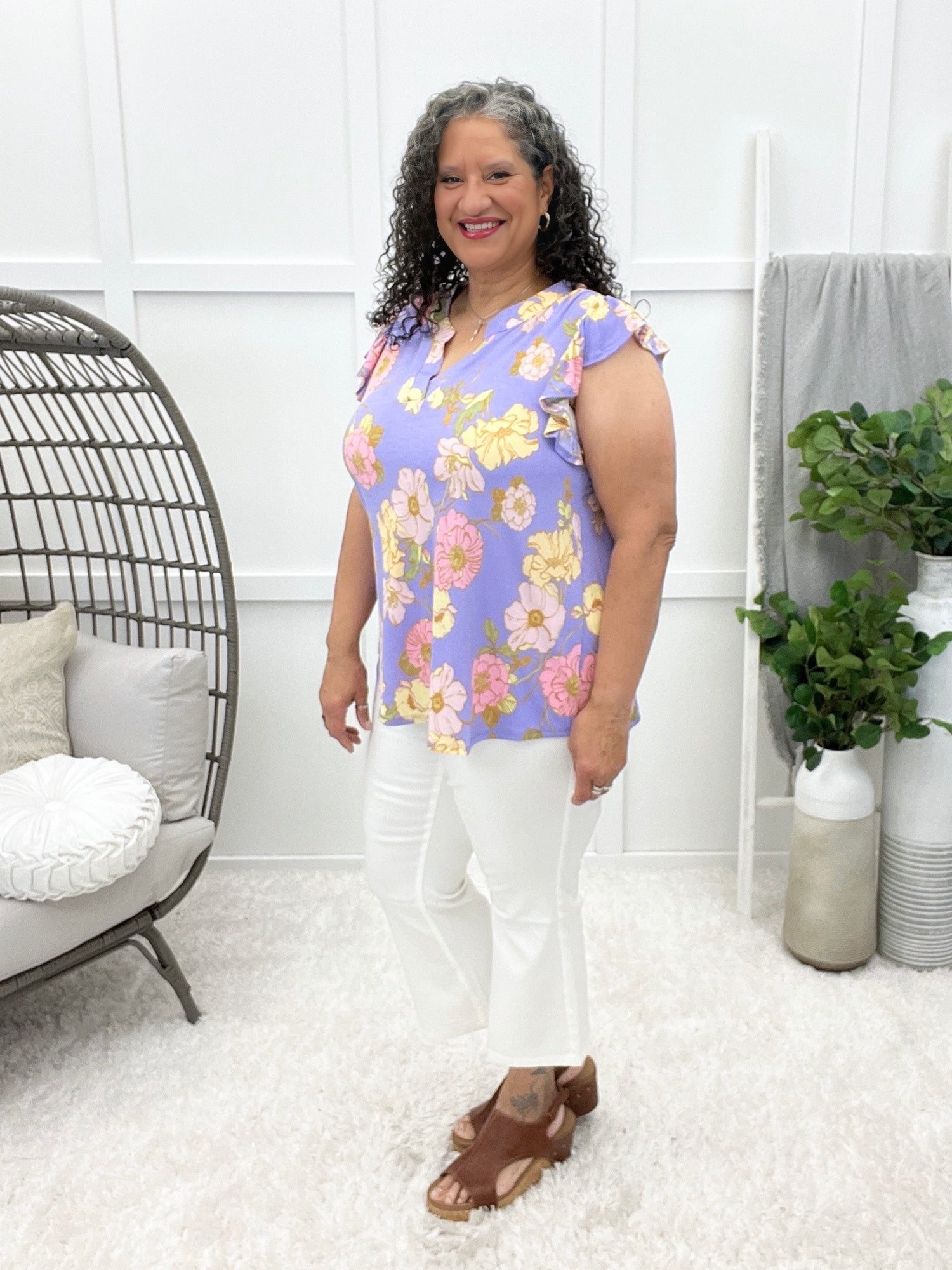 This wrinkle-free top is all about effortless charm with its crisp mandarin collar and subtle feminine flutter sleeves. It drapes beautifully for a relaxed yet polished fit. Pair it with tailored pants for the office or denim for a dressed-up casual vibe!