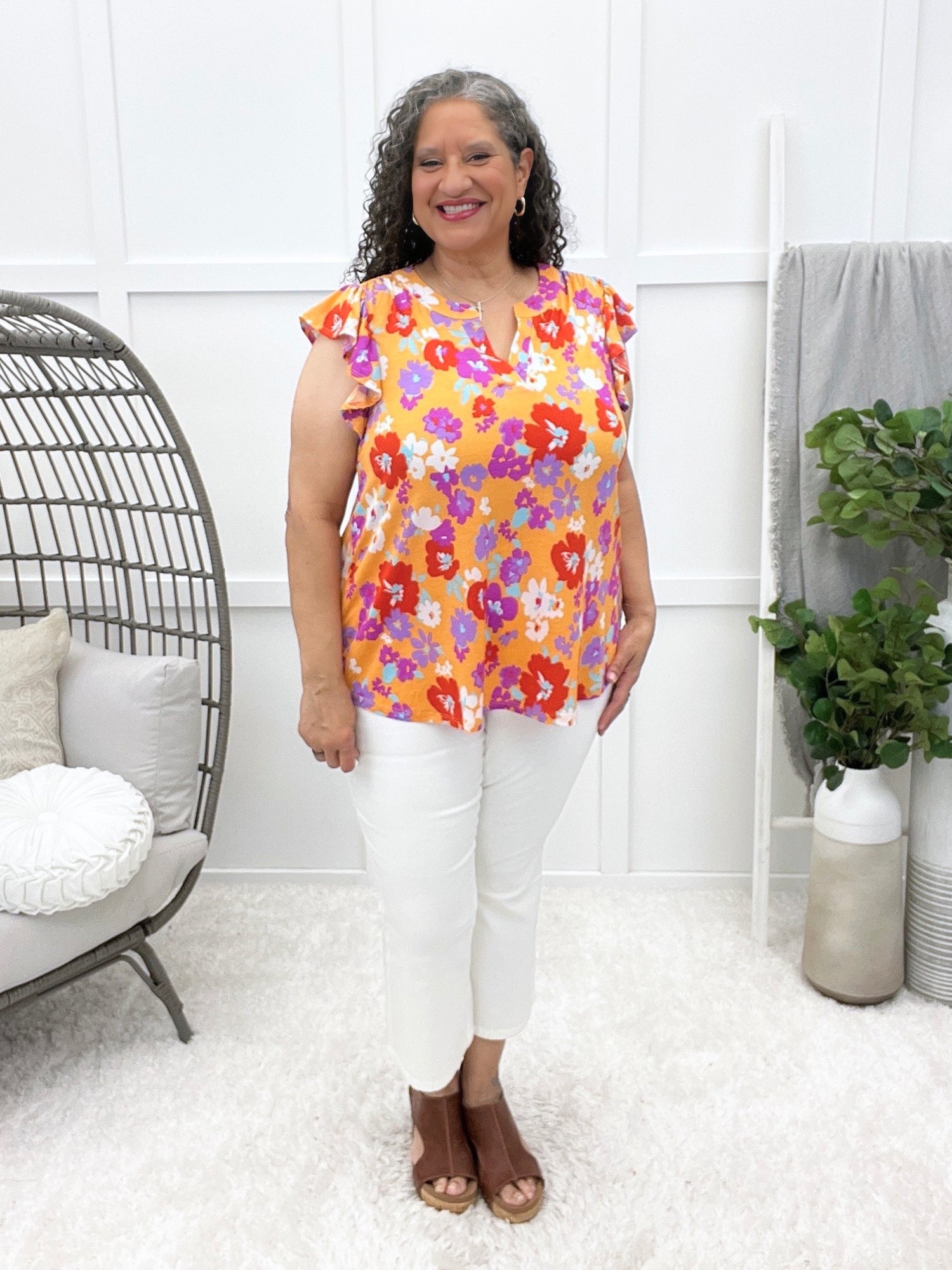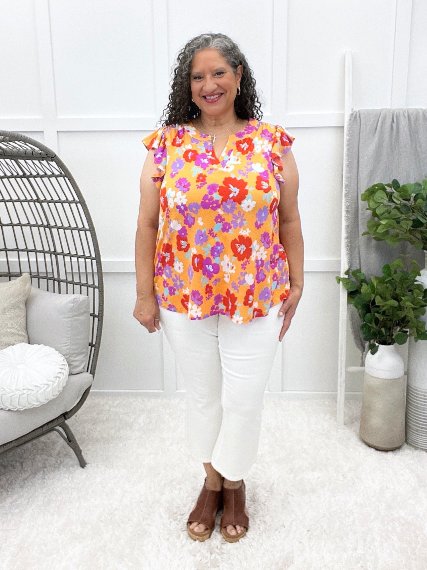This wrinkle-free top is all about effortless charm with its crisp mandarin collar and subtle feminine flutter sleeves. It drapes beautifully for a relaxed yet polished fit. Pair it with tailored pants for the office or denim for a dressed-up casual vibe!