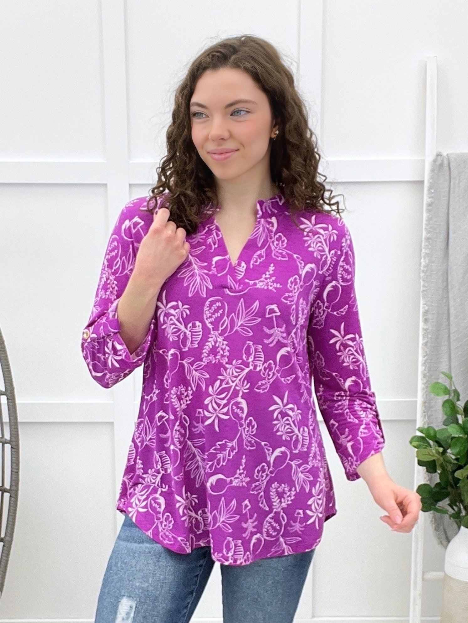This wrinkle-free top is all about effortless charm with its crisp mandarin collar, subtle puffed sleeves, and delicate smocked cuffs. The long sleeves add a polished touch, while the relaxed fit keeps it comfy all day. Pair it with tailored pants for the office or denim for a dressed-up casual vibe!