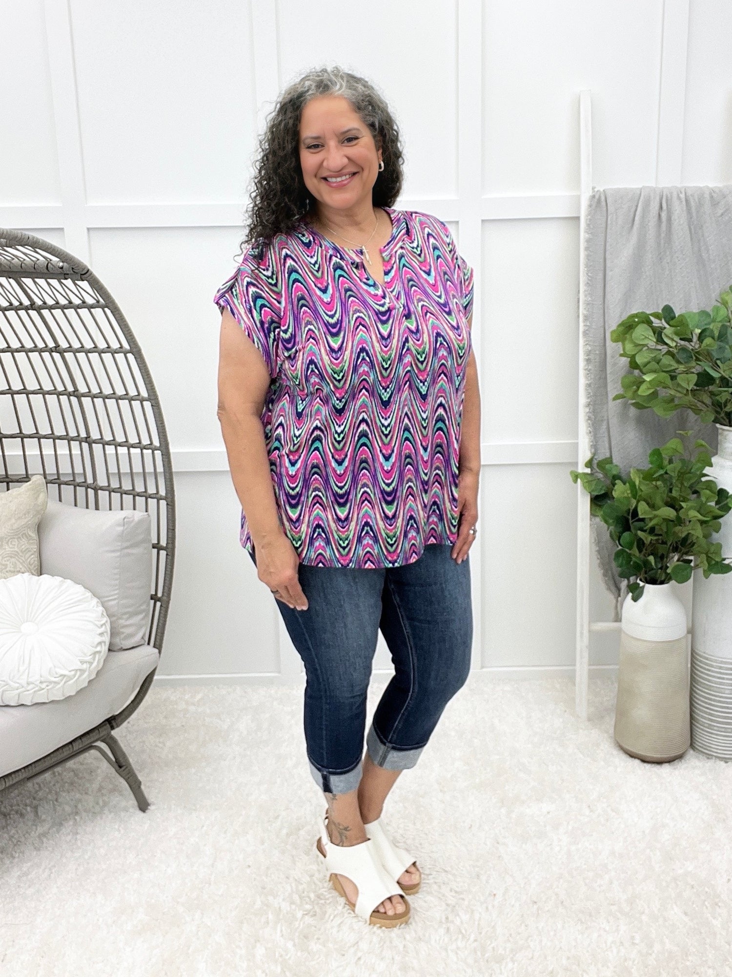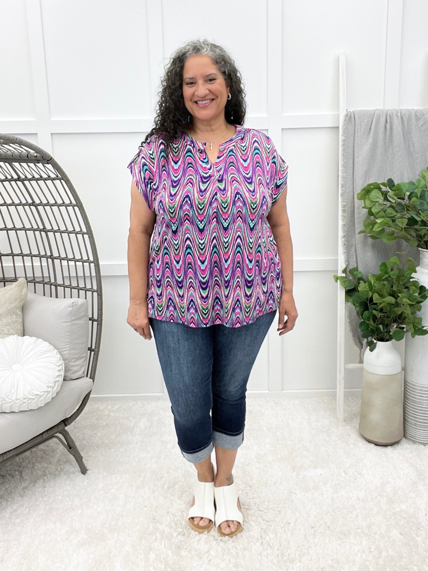 This Dear Scarlett Lizzy Top features charming lizzy details scattered across the body, paired with a chic tabbed sleeve design. The pleated back adds unexpected dimension, while the relaxed fit keeps you comfortable all day long. Best of all? The wrinkle-free fabric means less time ironing and more time enjoying those warm days. Effortlessly stylish, wonderfully easy to care for.