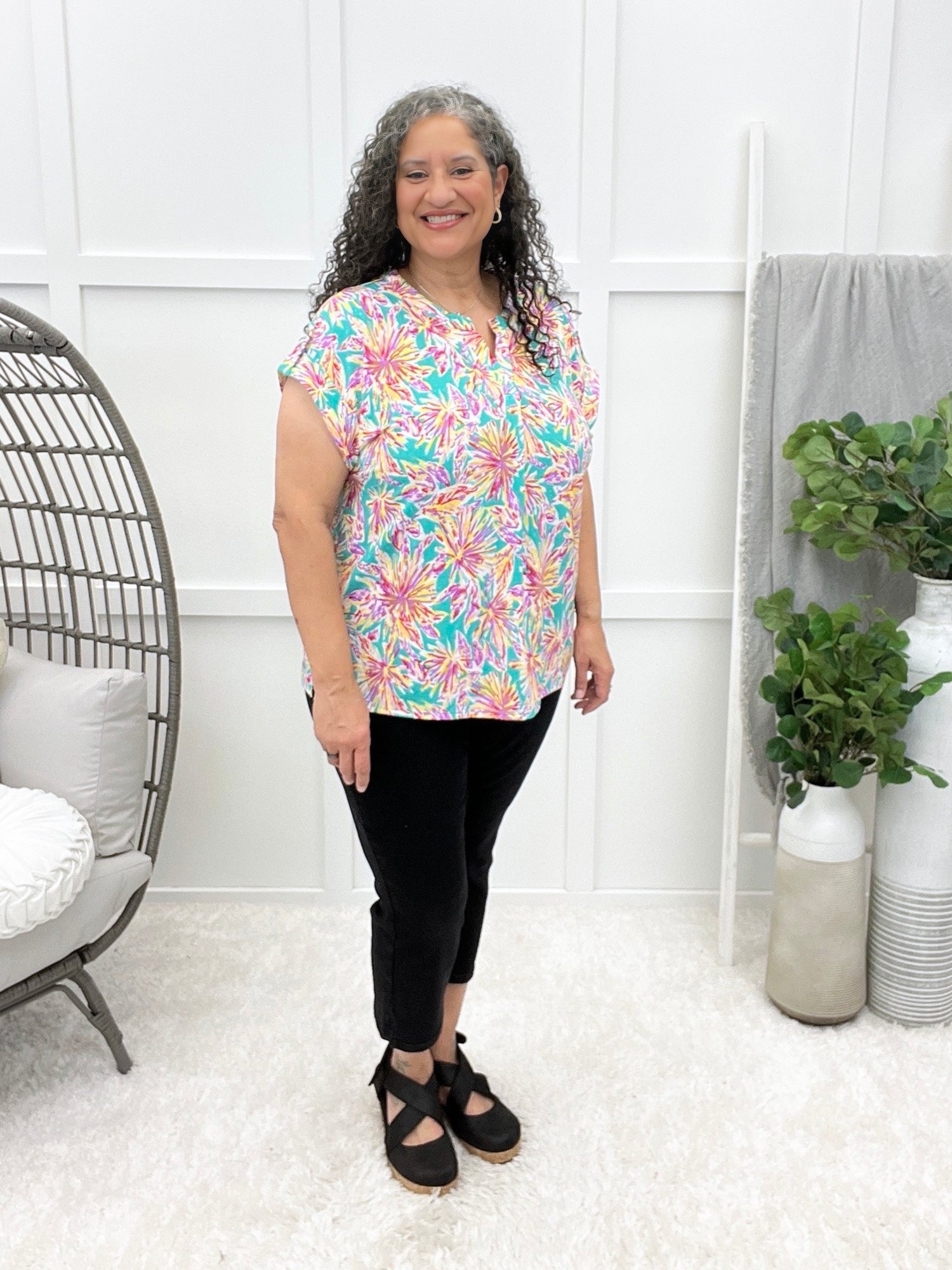 Meet your new go-to summer essential! This Dear Scarlett Lizzy Top features charming details scattered across the body, paired with a chic tabbed sleeve design. The pleated back adds unexpected dimension, while the relaxed fit keeps you comfortable all day long. Best of all? The wrinkle-free fabric means less time ironing and more time enjoying those warm days. Effortlessly stylish, wonderfully easy to care for.