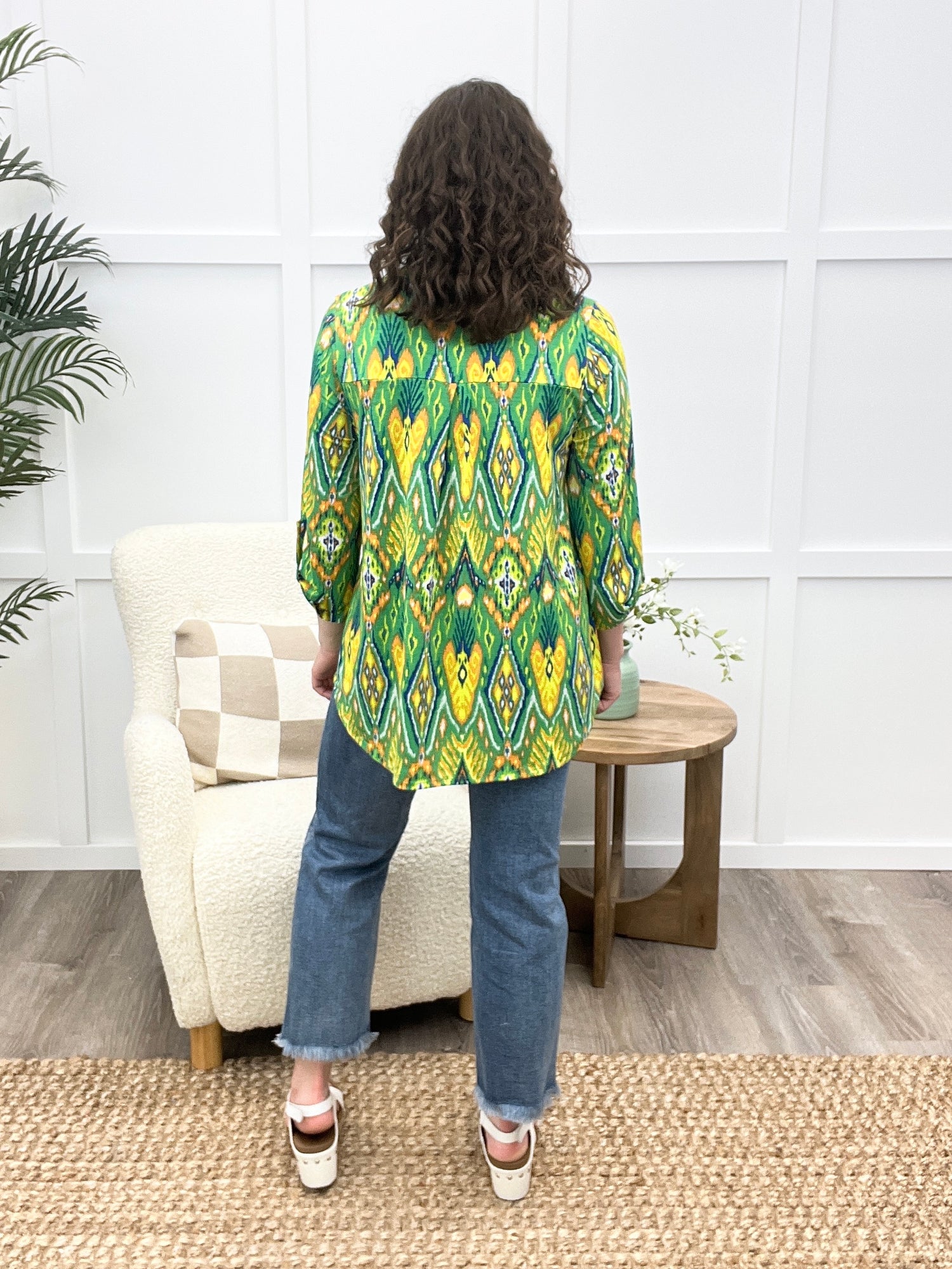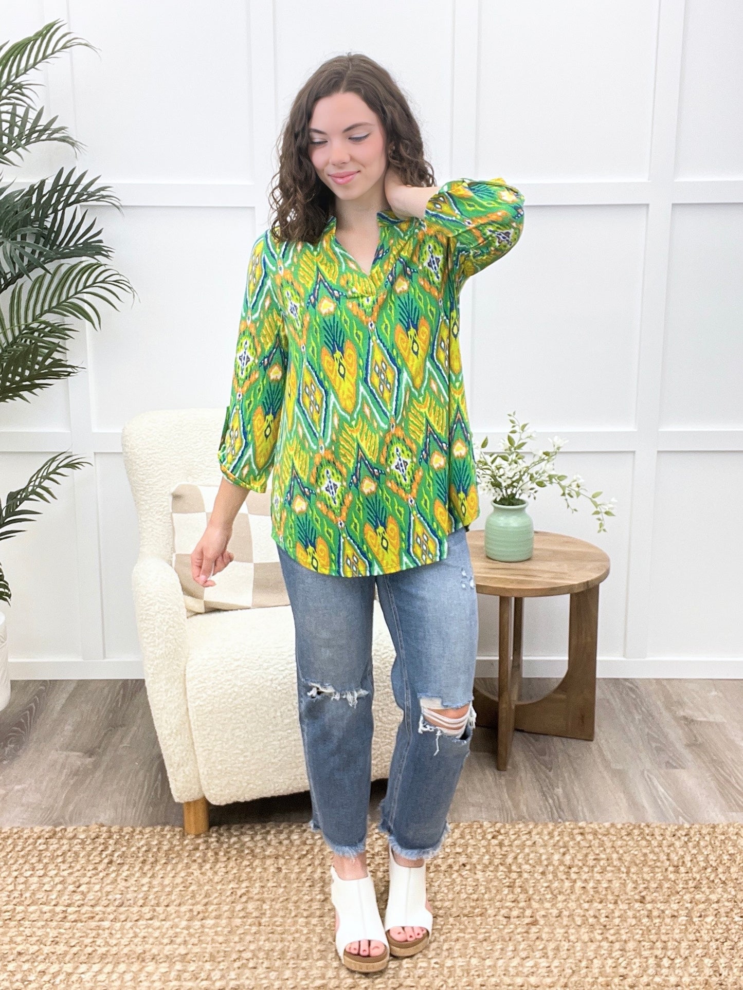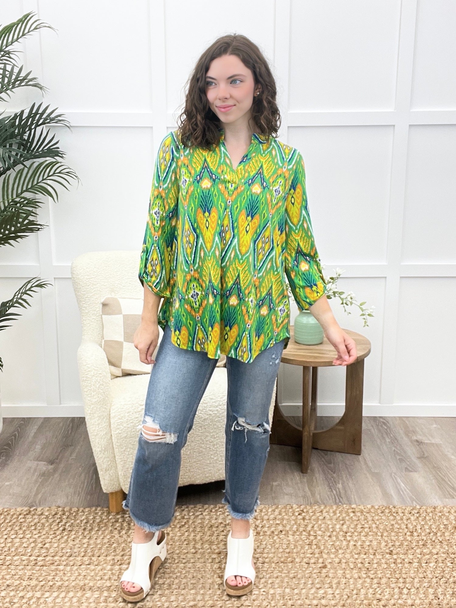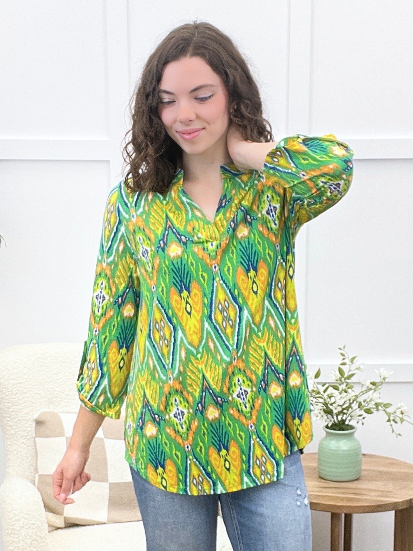 Slip into sheer comfort with this top, boasting luxurious wrinkle-free fabric that feels utterly amazing and cooler than anything! It features a lovely mandarin collar, 3/4 length sleeves with tabs, and a perfectly relaxed, flowing high-low hem.
