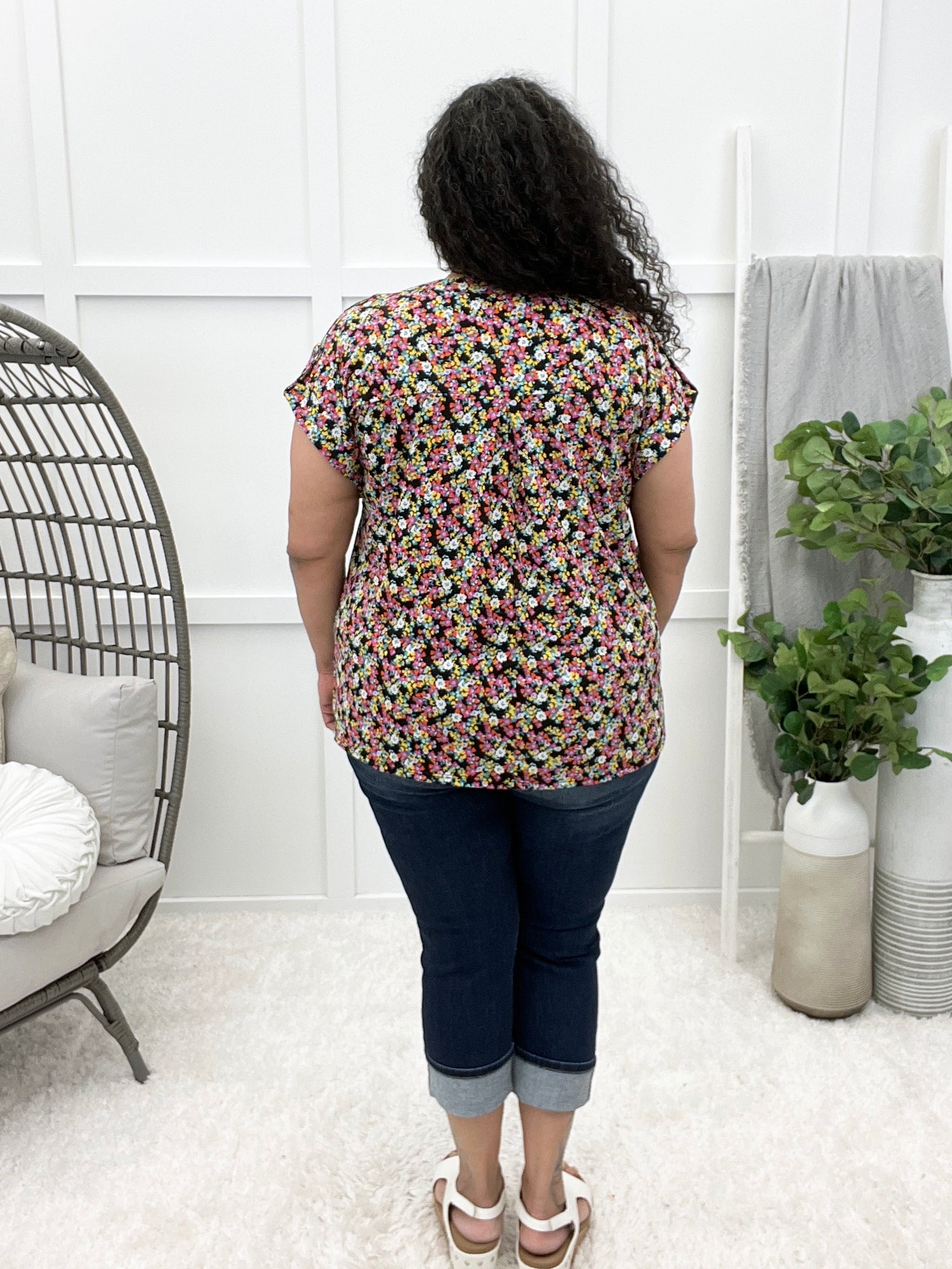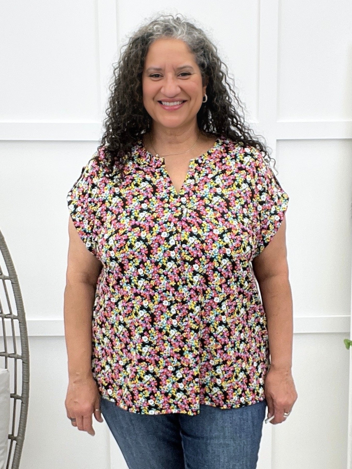 Dear Scarlett Women's Black Multi Color Floral Short Sleeve Lizzy Top