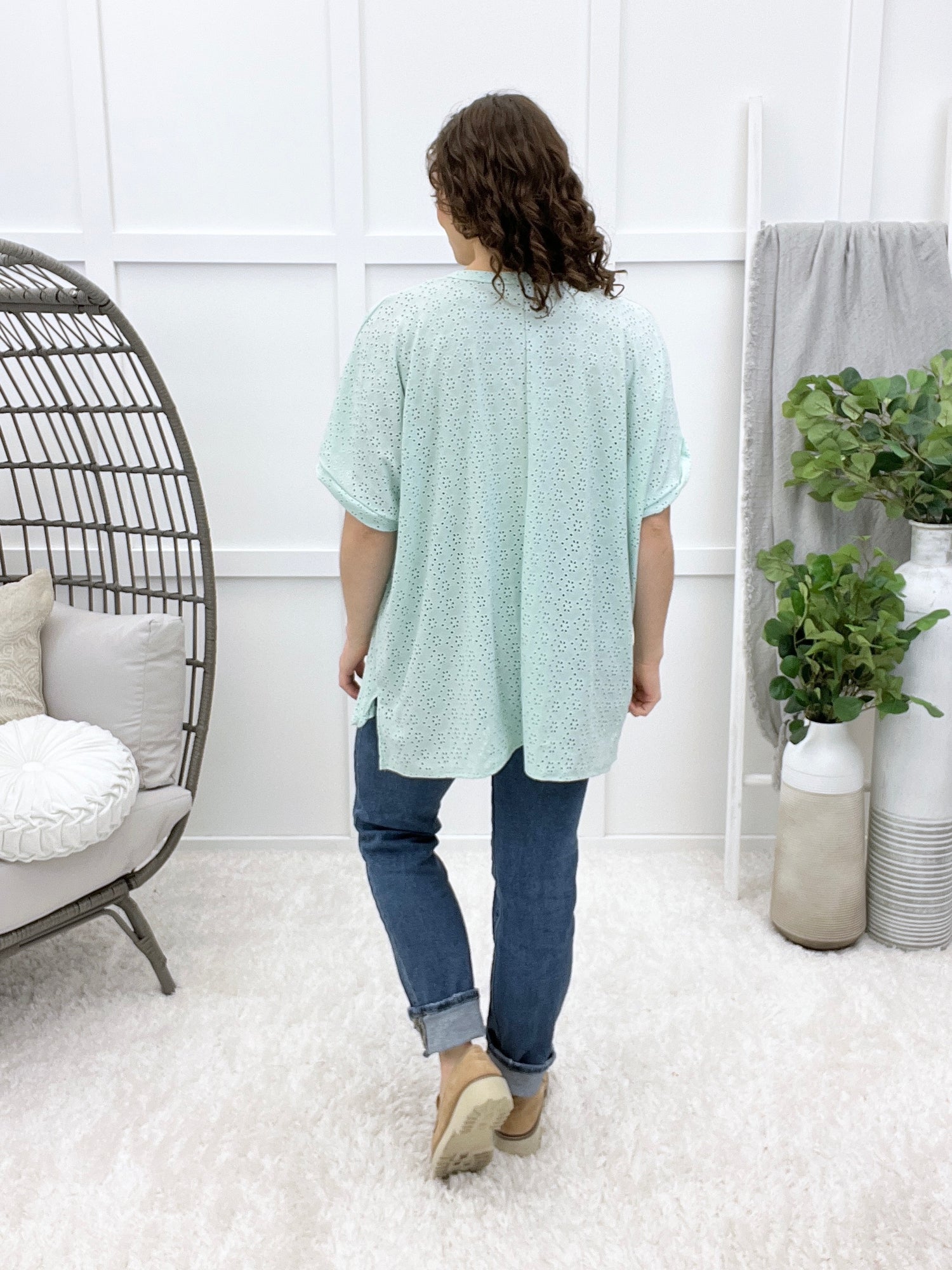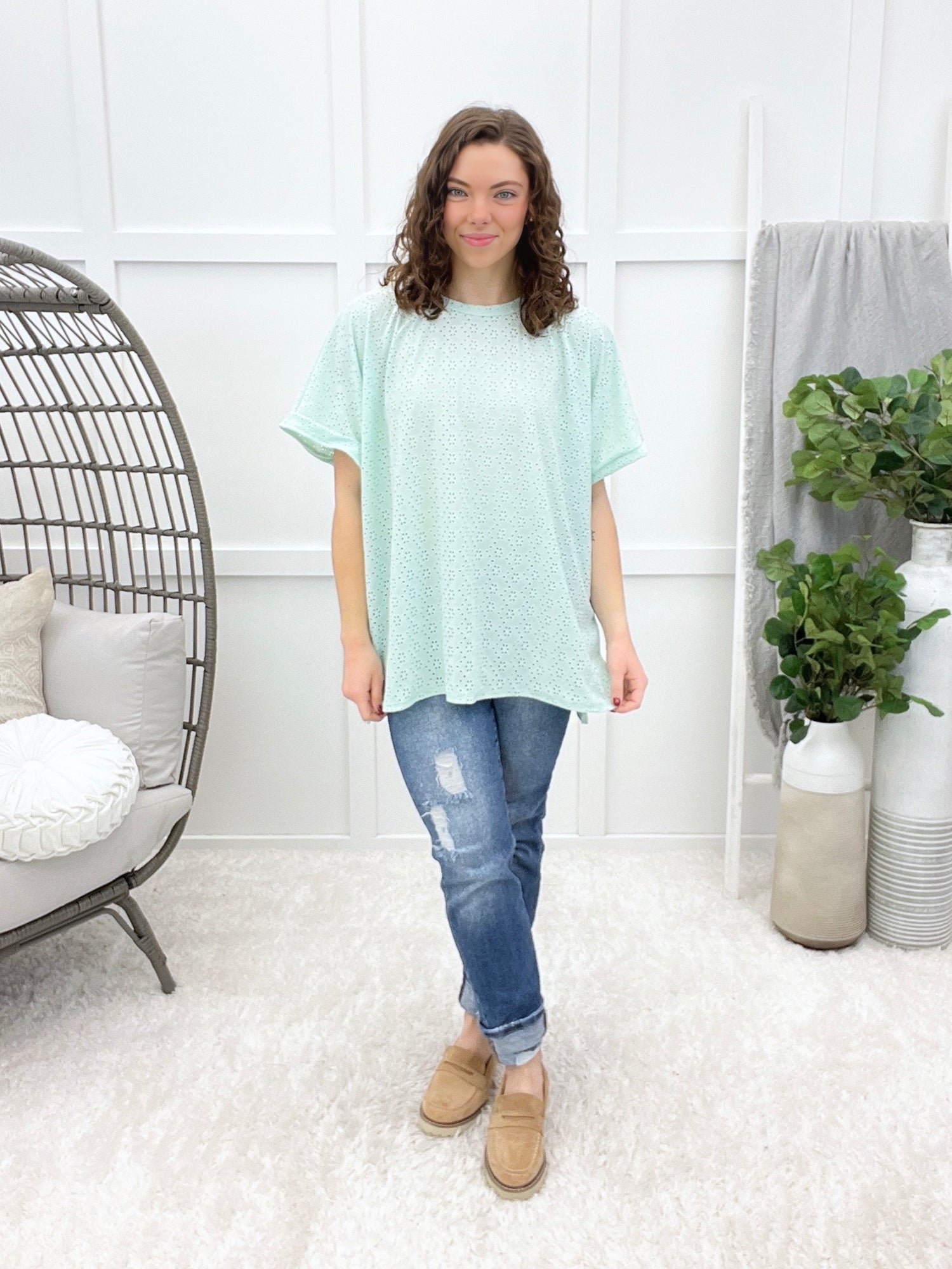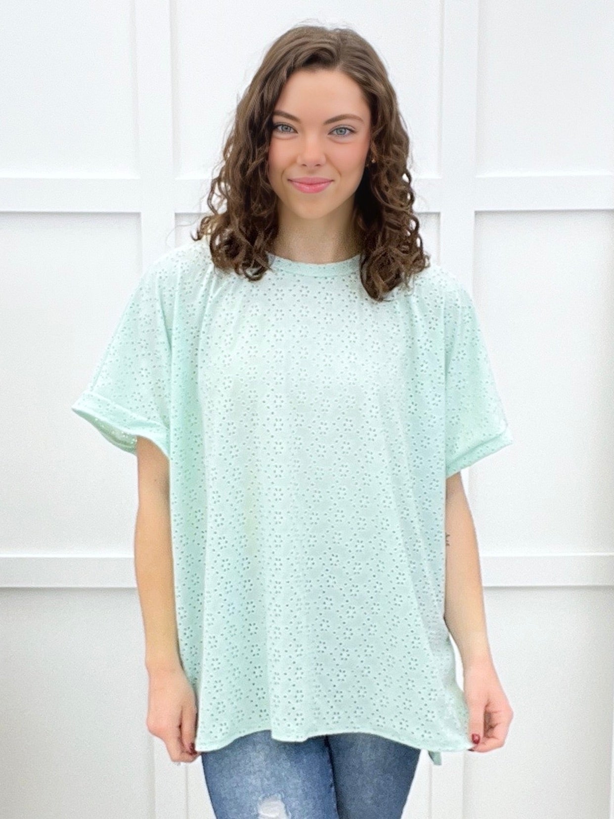 Pair this effortless, eyelet top with your favorite jeans for a vibe that works equally well at brunch with friends or a casual day out running errands. Whether you're heading to the coffee shop, the farmers market, or just living your best laid-back life, this versatile piece is your new go-to for looking put-together without trying too hard.