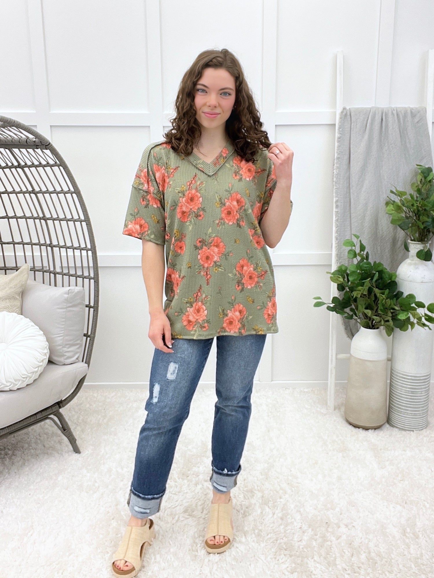 This floral top features a textured finish with a v-neckline and subtle shoulder detailing for a fresh, everyday look. The patterned design adds visual interest while keeping styling easy and approachable. Pair it with denim and simple shoes for casual outings, lunch dates, or weekend plans.