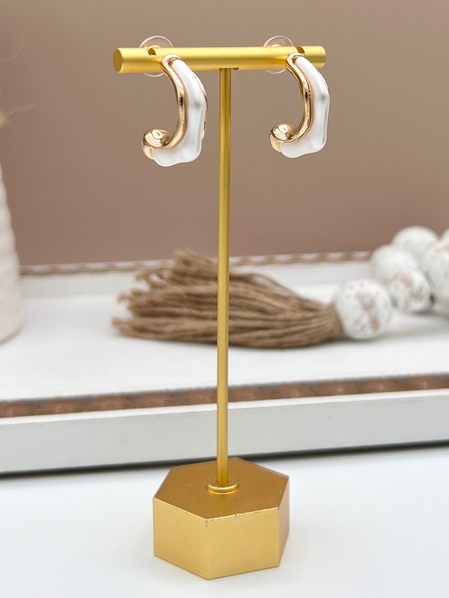 Embrace effortless charm with the Feeling Right At Home Earrings. These organic pearl hoops blend natural elegance with a playful twist, perfect for adding a fresh and inviting touch to any outfit.