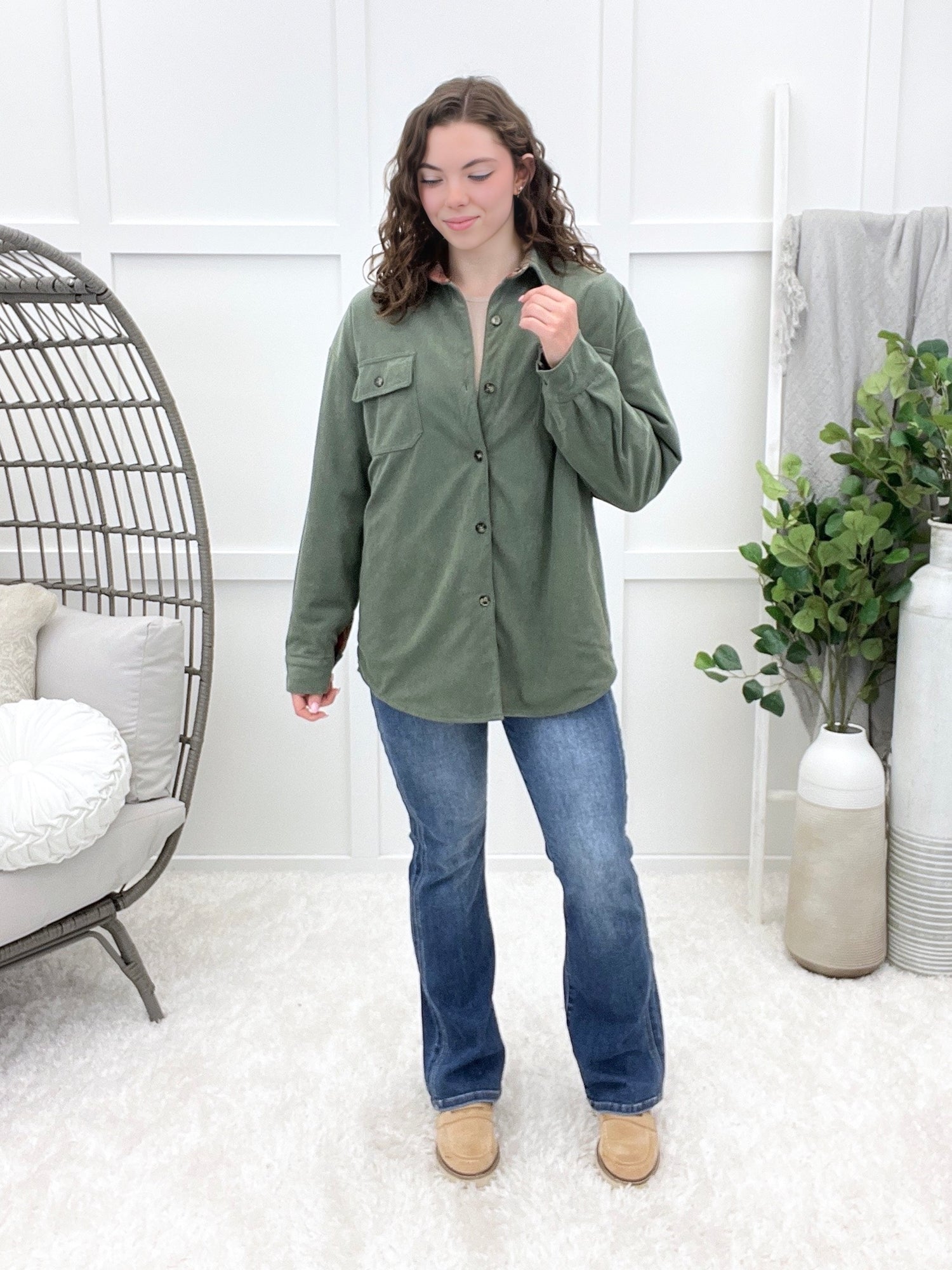Stay versatile in this shacket, designed with a reversible corduroy and plaid finish for two looks in one. The button-up style and relaxed fit make it an easy layering piece for any season. Perfect for switching up your outfit with minimal effort while keeping all the cozy vibes.