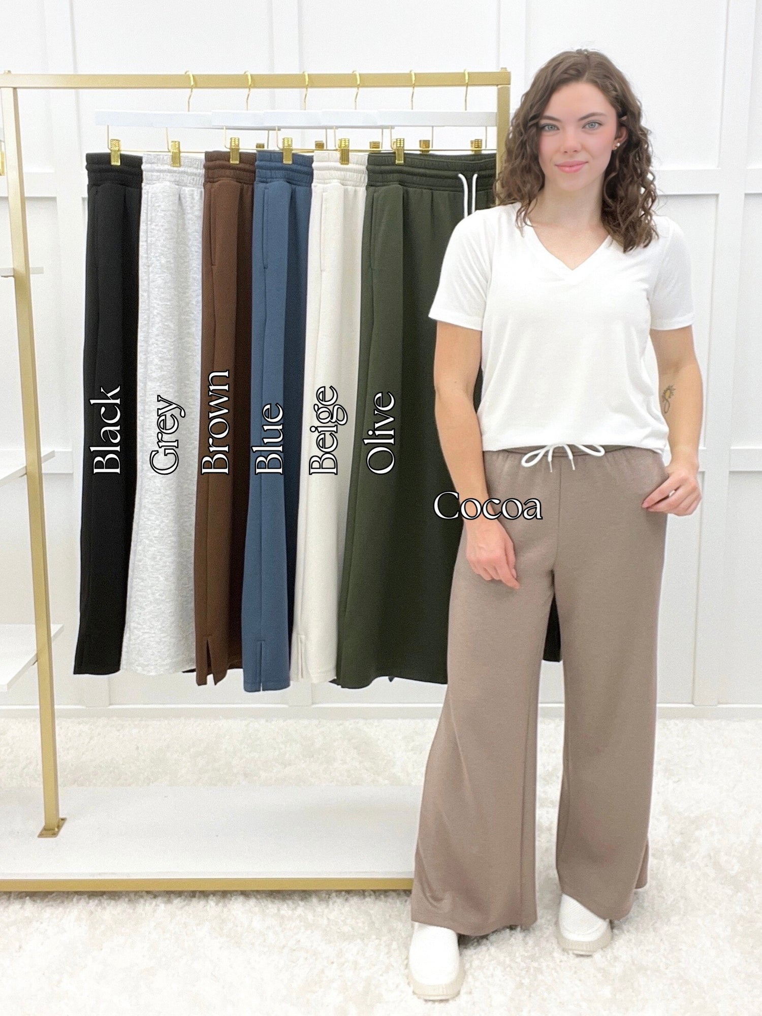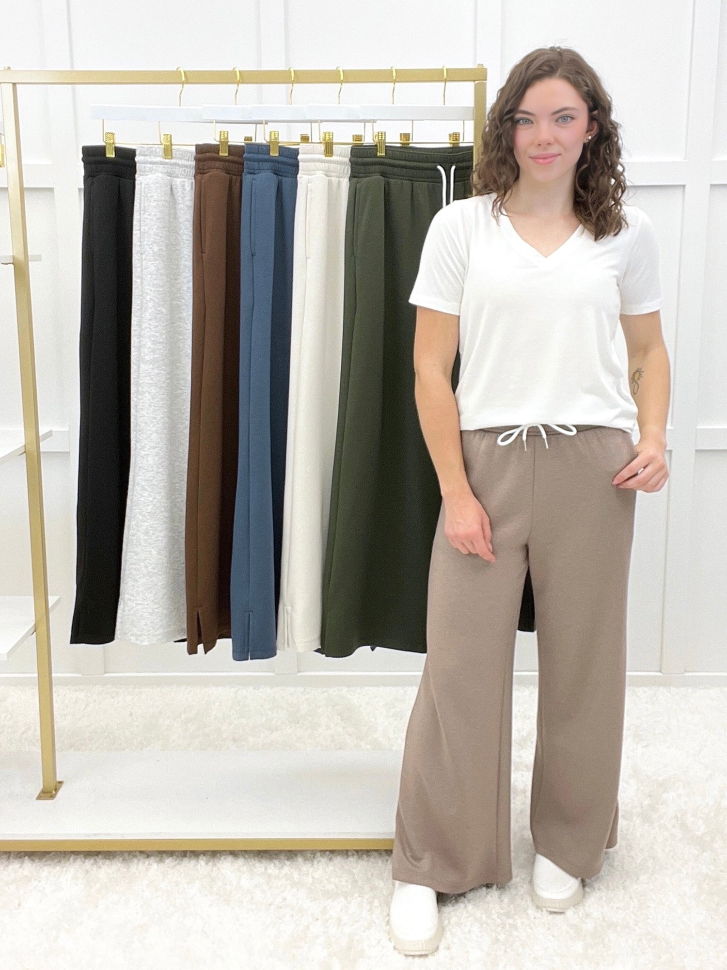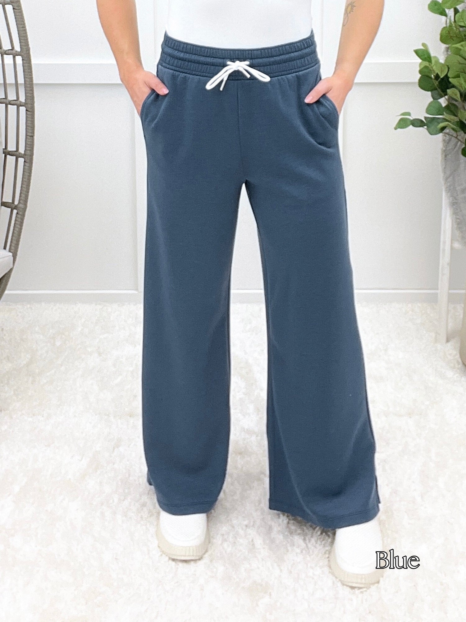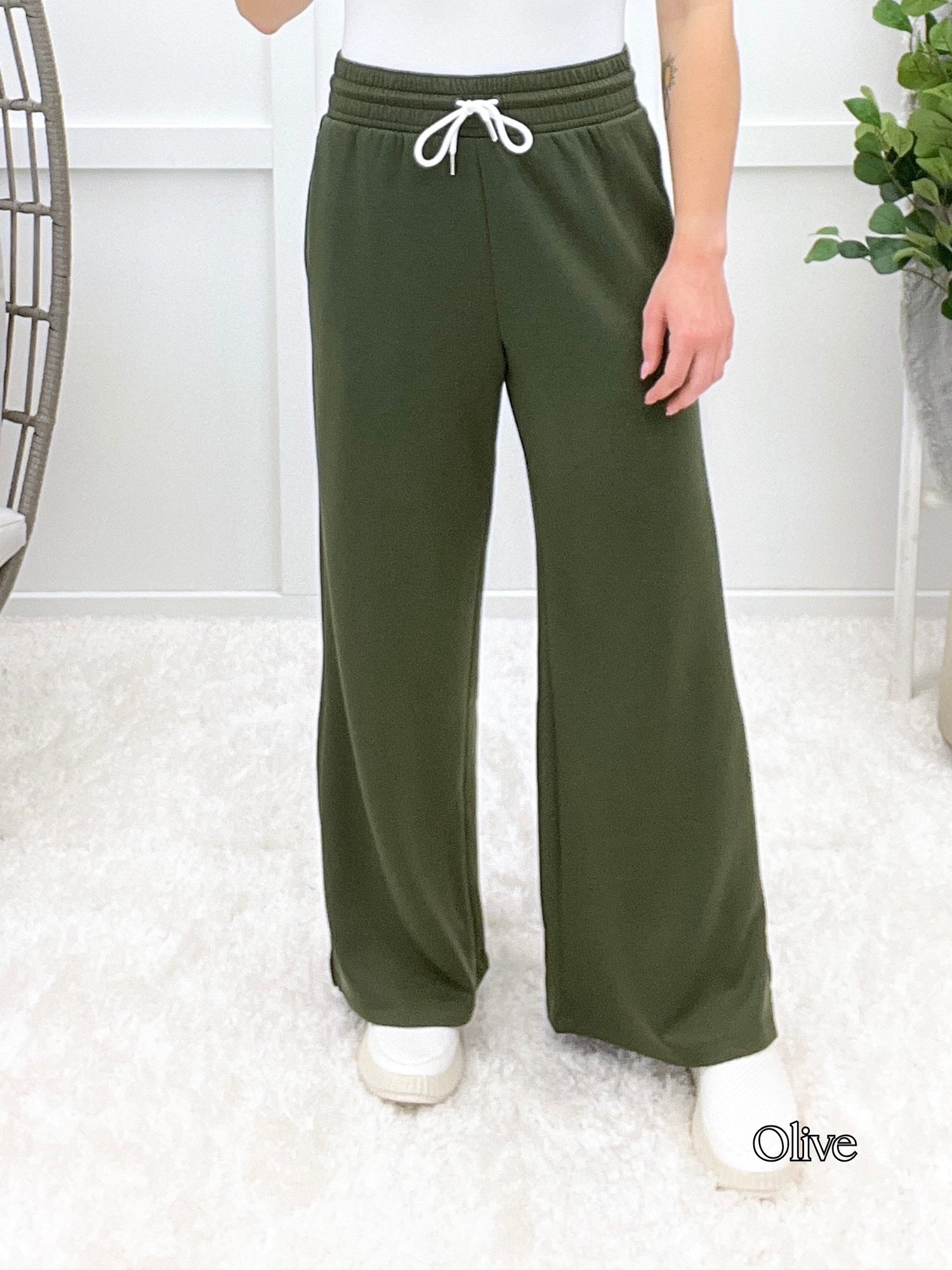 These scuba drawstring pants serve up sleek comfort with a relaxed fit, stretchy waistband, and handy pockets. Whether you're lounging at home or heading out for a casual coffee date, they're your new off-duty favorite. Pair them with a cropped hoodie or oversized tee for that effortless cool-girl vibe!