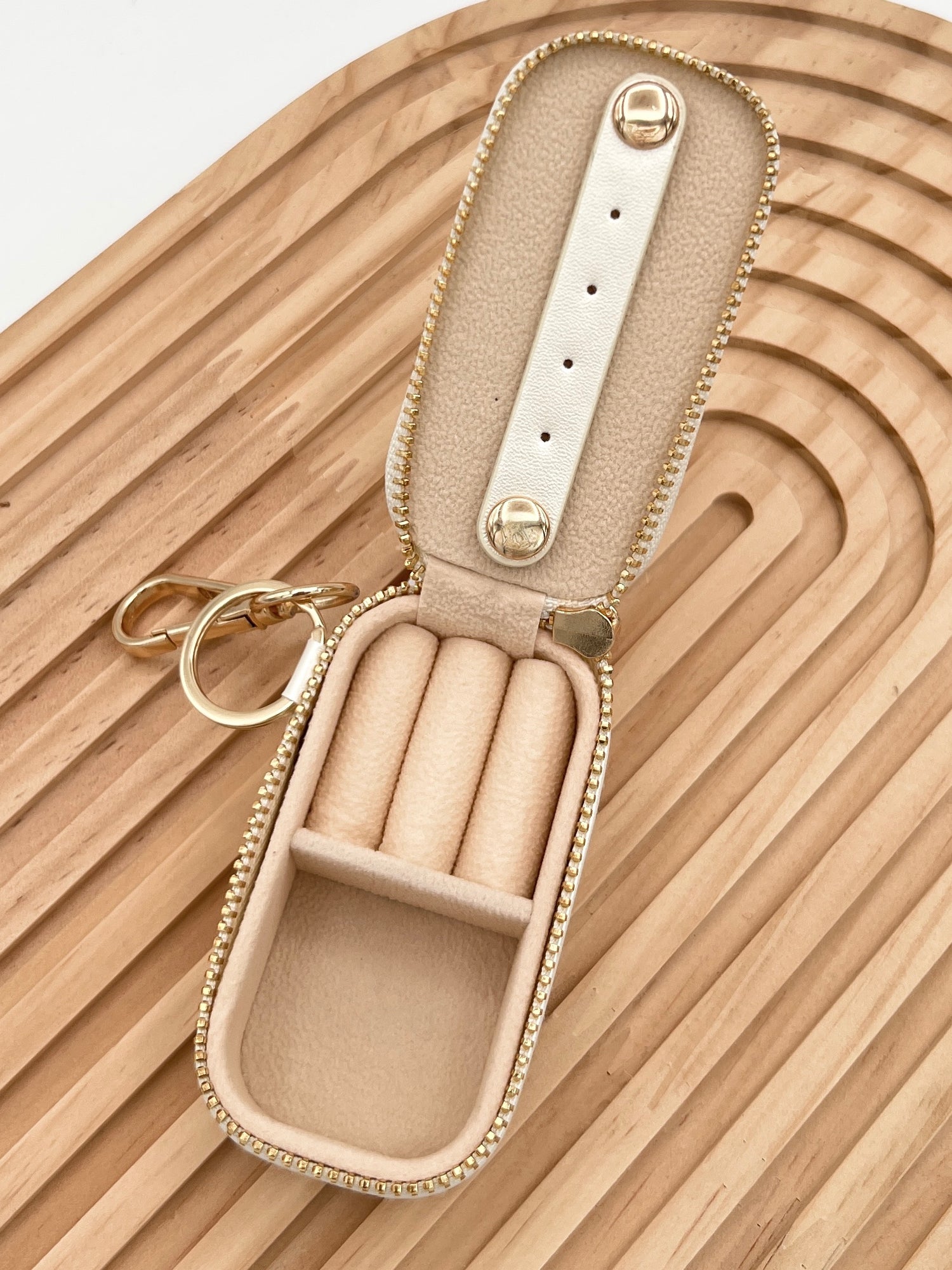 Keep your treasures safe and sound with our mini jewelry cases! Perfect for on-the-go adventures, beauty appointments, or poolside dips. These adorable cases feature versatile compartments for all your jewelry, plus a handy swivel snap clip and keyring to attach anywhere. Toss one in your bag or gift to your jewelry-loving friends!