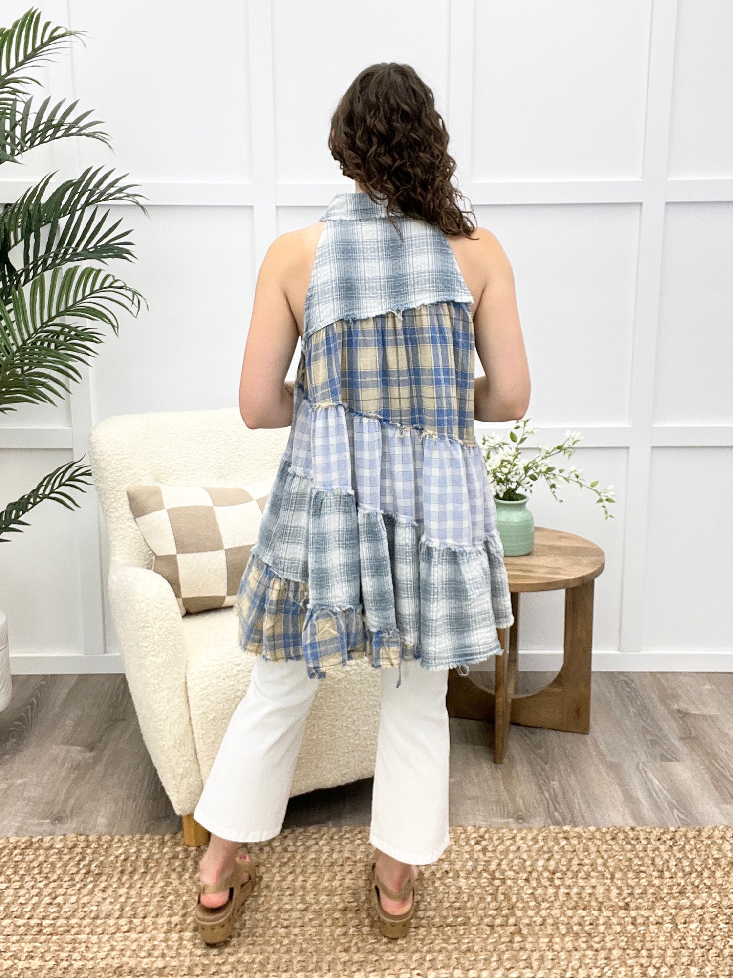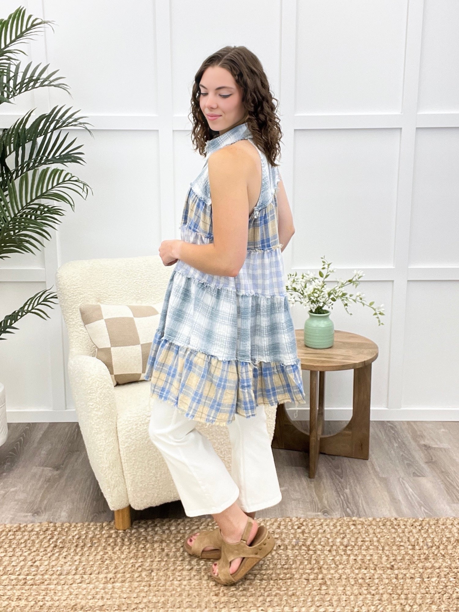 This sleeveless dress features a unique mixed checkered pattern, button front, and a cute collar with a cut edge, making it both stylish and playful. Its tunic top design adds a touch of elegance, perfect for adding a pop of color to your day. Show off your love for fashion with the On Your Love Tunic Top.