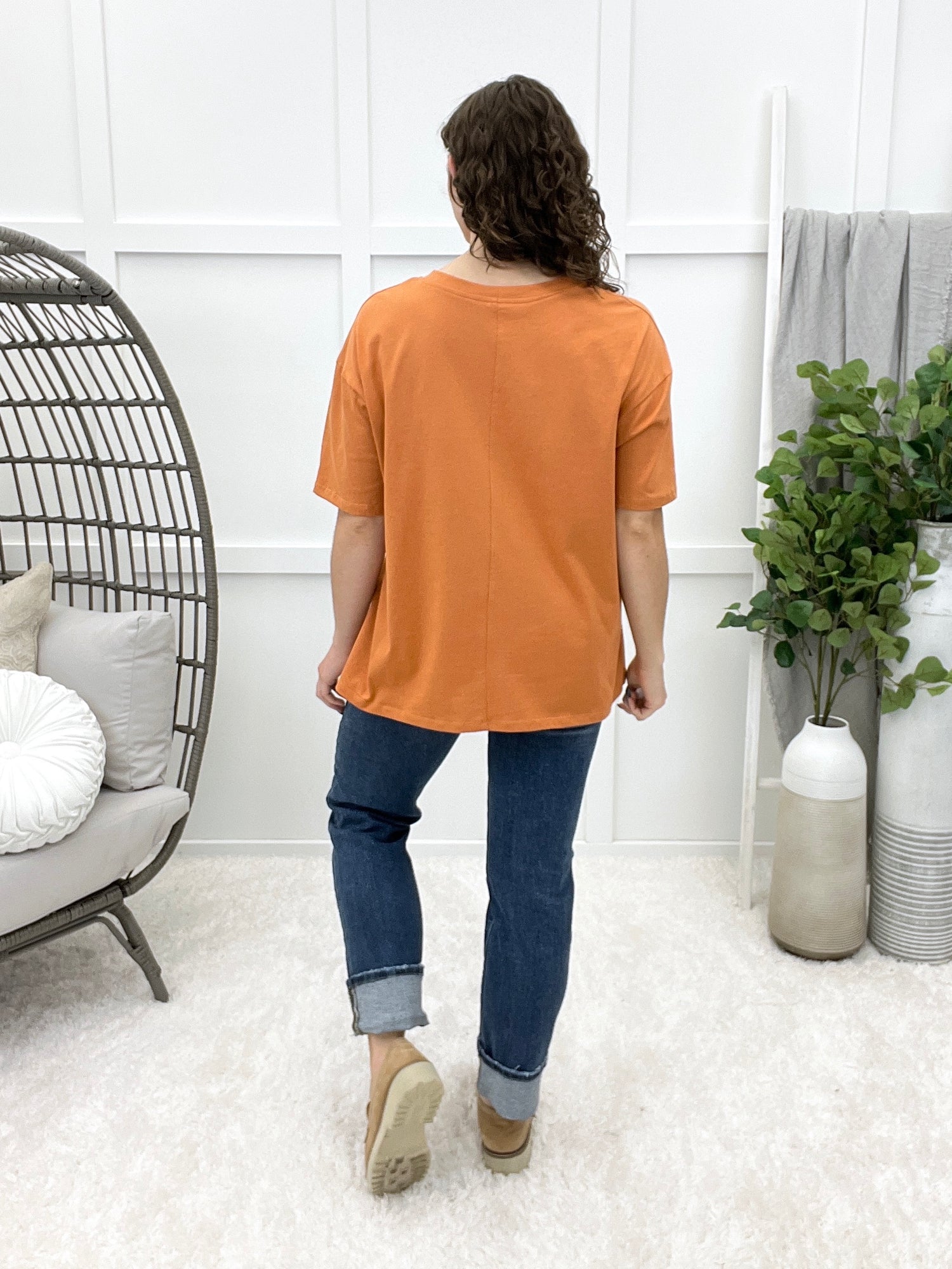 `This top offers a relaxed, oversized fit with dropped shoulders and a unique patch-pocket detail, adding a touch of casual cool. The contrasting denim pocket brings an element of texture and visual interest to the simple design. Pair it with your favorite denim shorts or a flowy skirt for an effortlessly stylish look, perfect for weekend outings or relaxed gatherings.