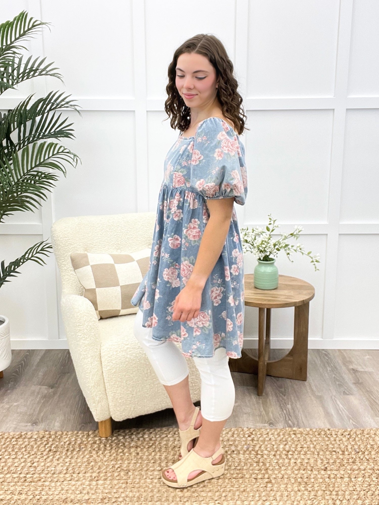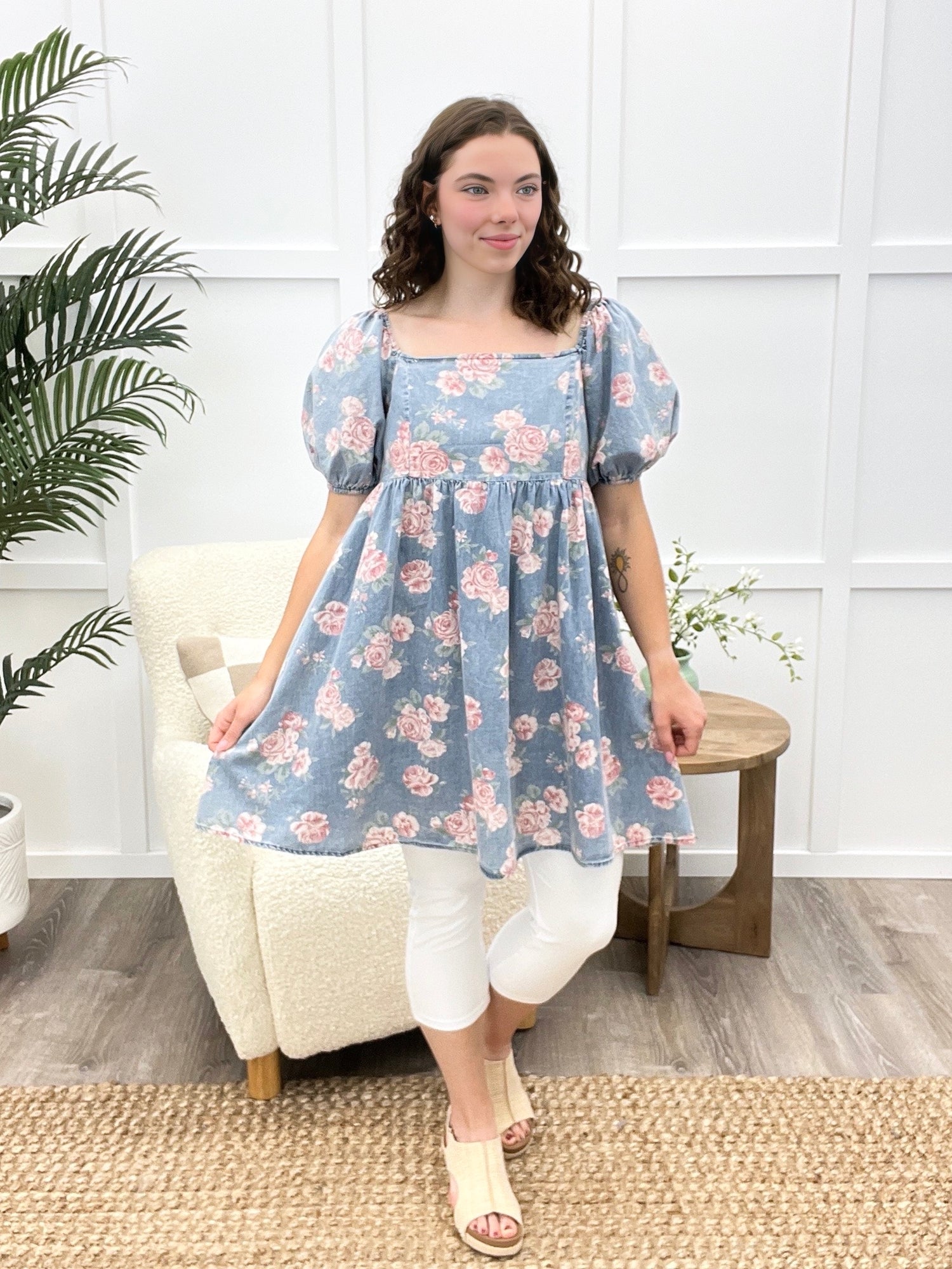 Step into sunshine with the Pushing The Limits Tunic Top, featuring a charming washed floral print and playful short balloon sleeves. The lightweight fabric flows effortlessly, while the back invisible zipper ensures a smooth, flattering fit. Perfect for twirling through warm days or casual outings, this dress adds a touch of fun and femininity to your wardrobe.