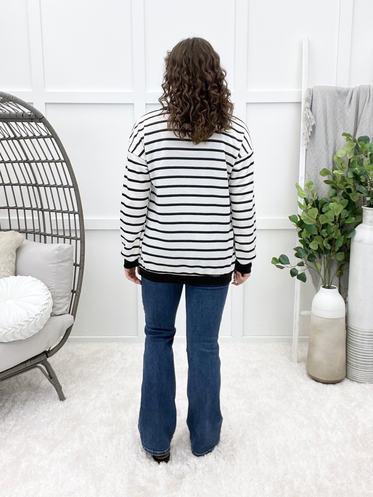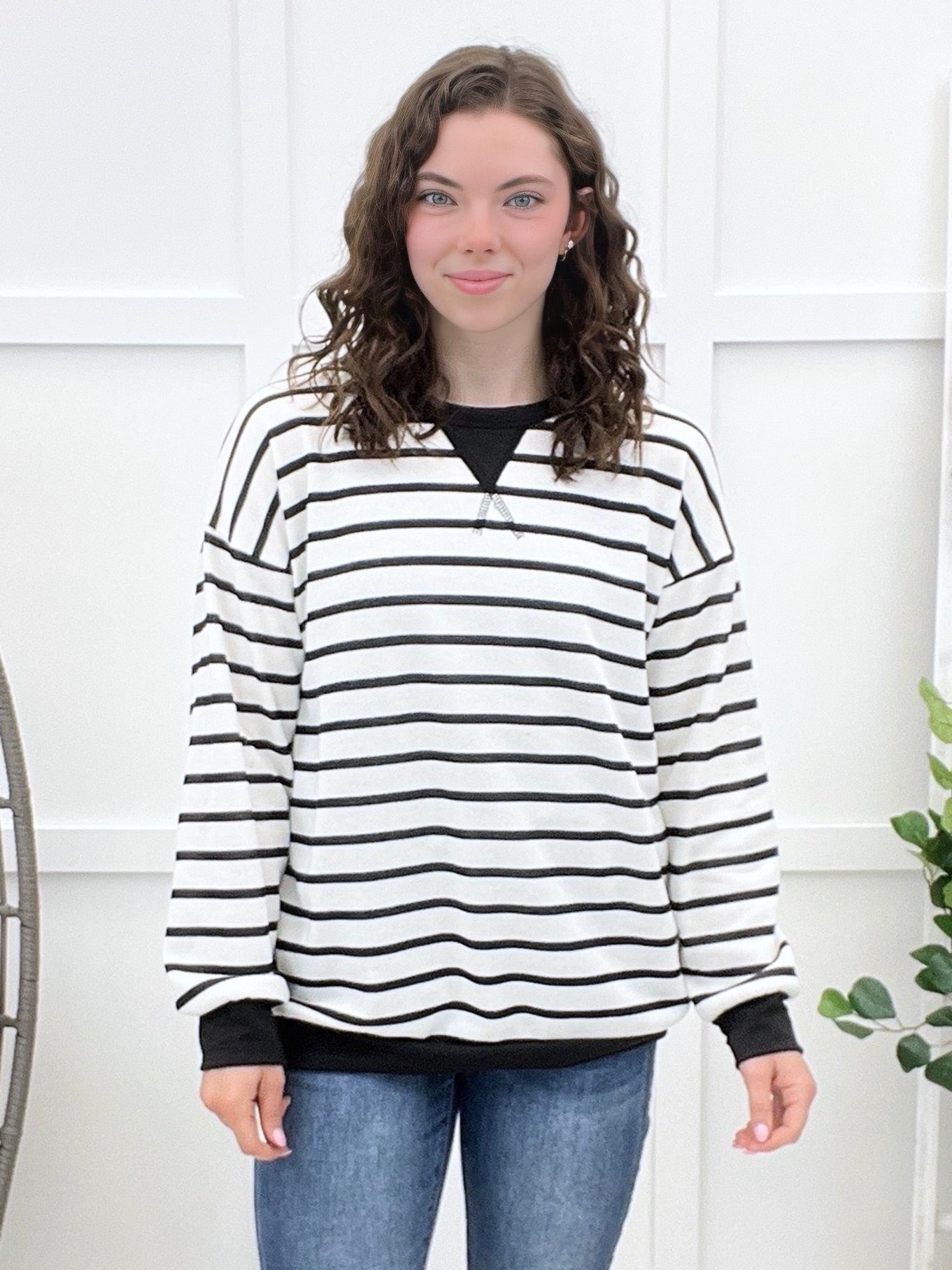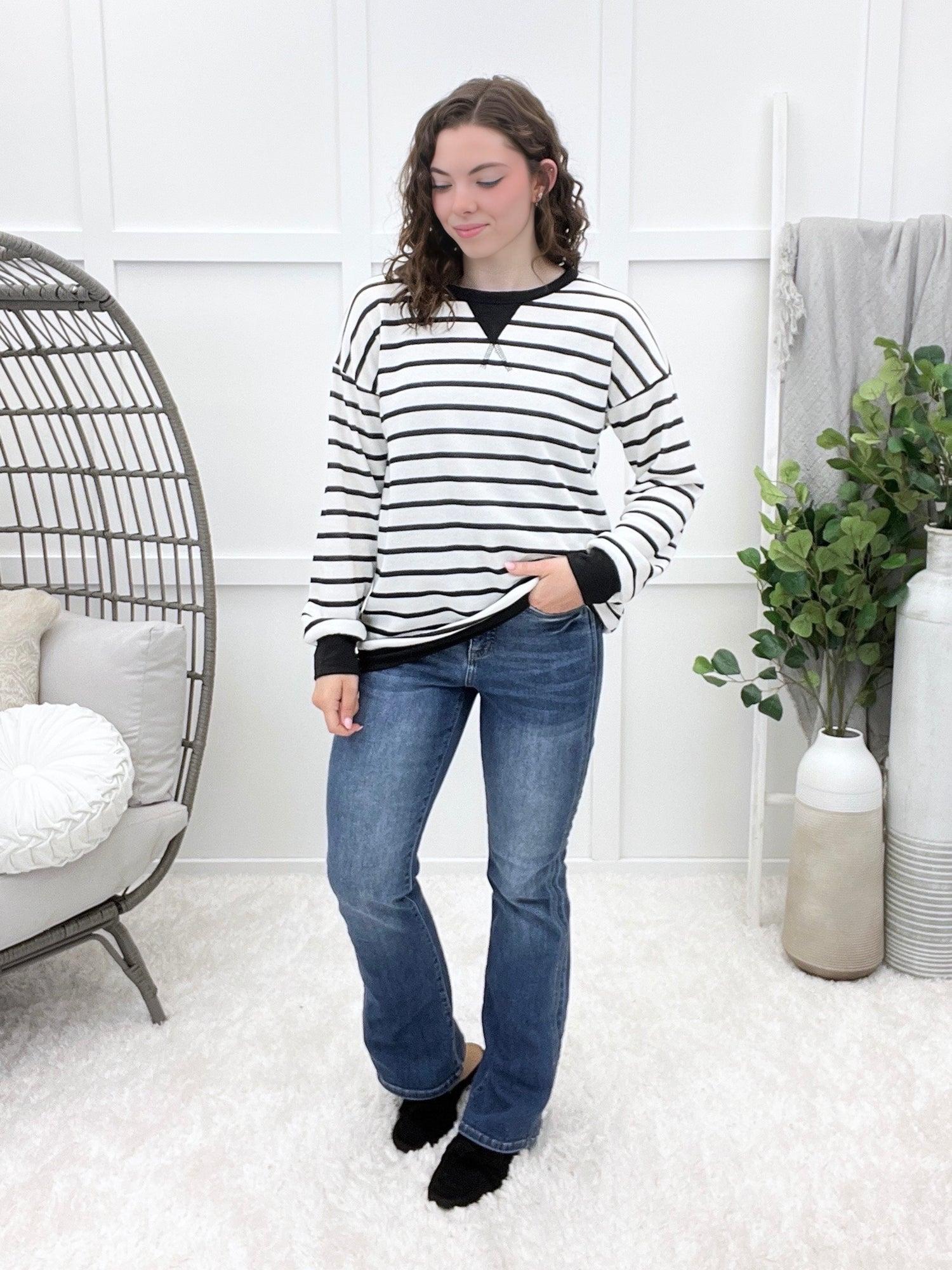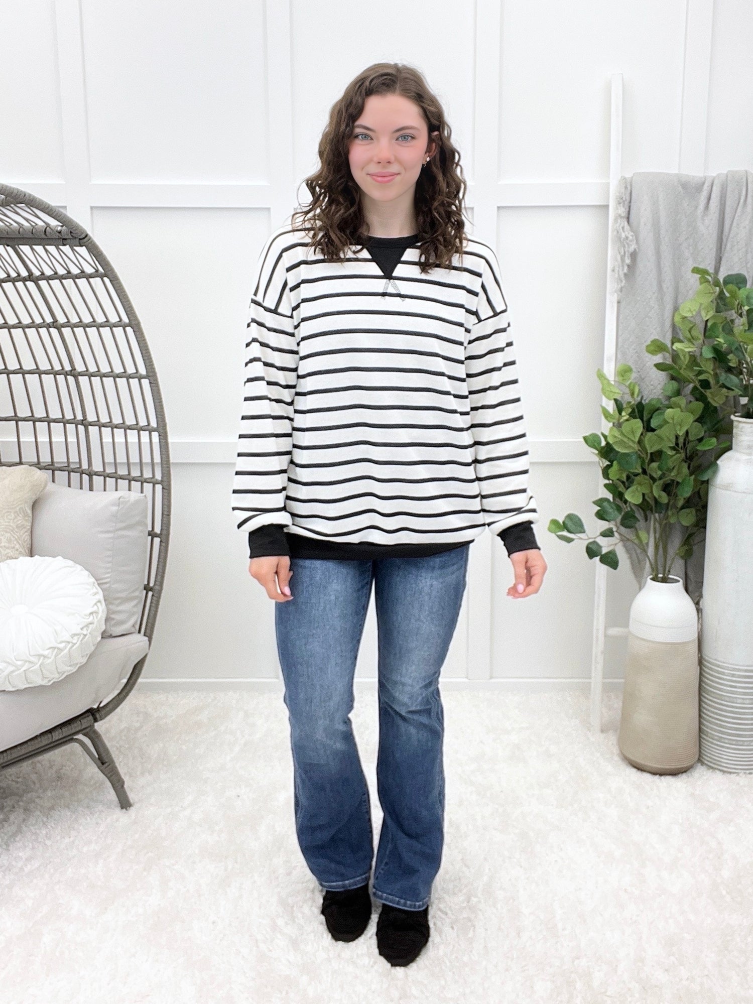 Stay effortlessly chic in this striped top featuring a relaxed, slightly oversized fit. Perfect for layering with jeans, leggings, or shorts, this lightweight top is a timeless staple you’ll reach for on casual weekends, coffee runs, and breezy evenings alike.
