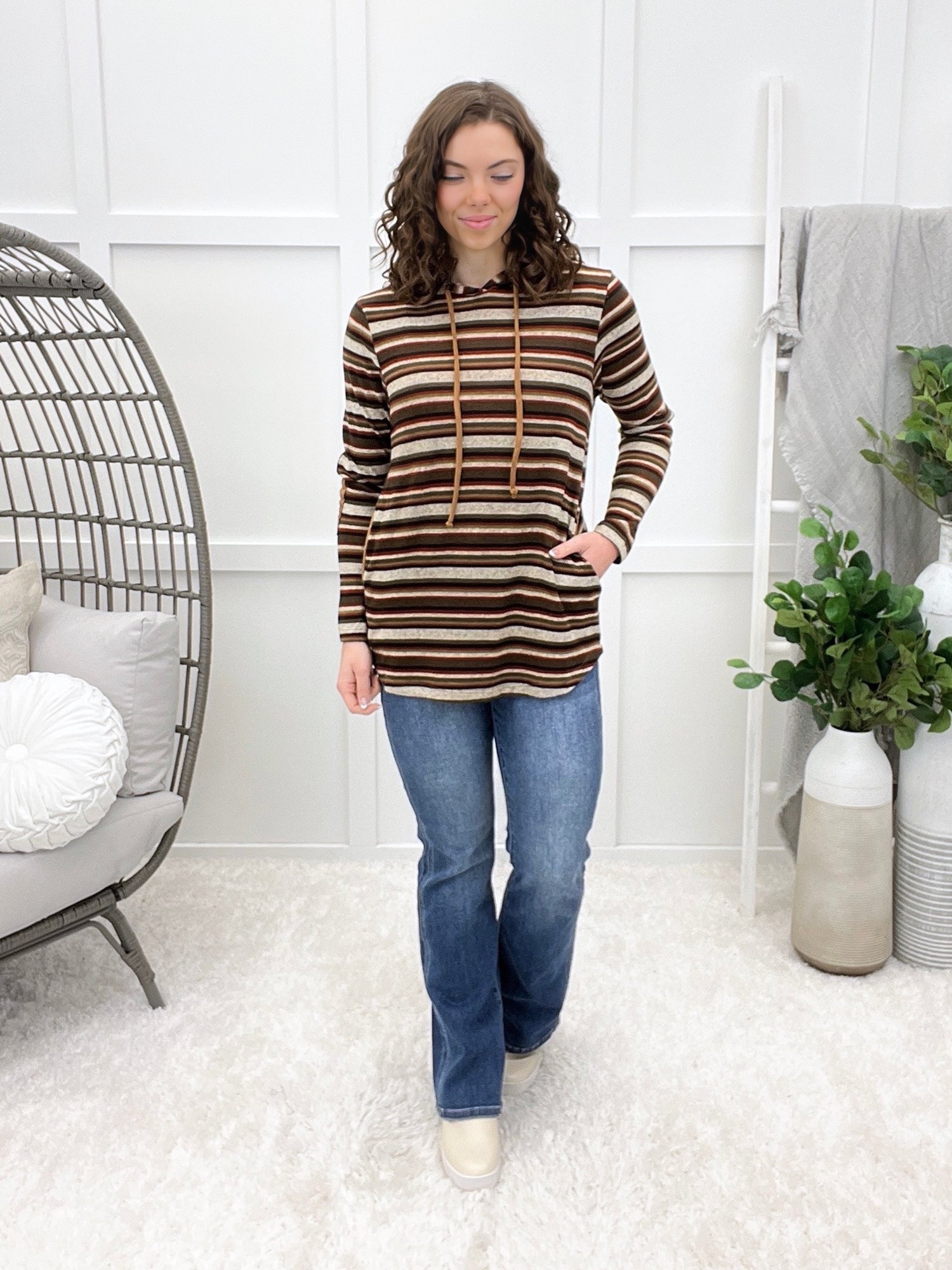 Cozy up in our striped hoodie with personality plus! This playful top features fun elbow patches for a touch of whimsy and handy pockets to stash your treasures. Perfect for those "I woke up like this" days when you want to look effortlessly cool while staying comfy. Stripes never had so much attitude!