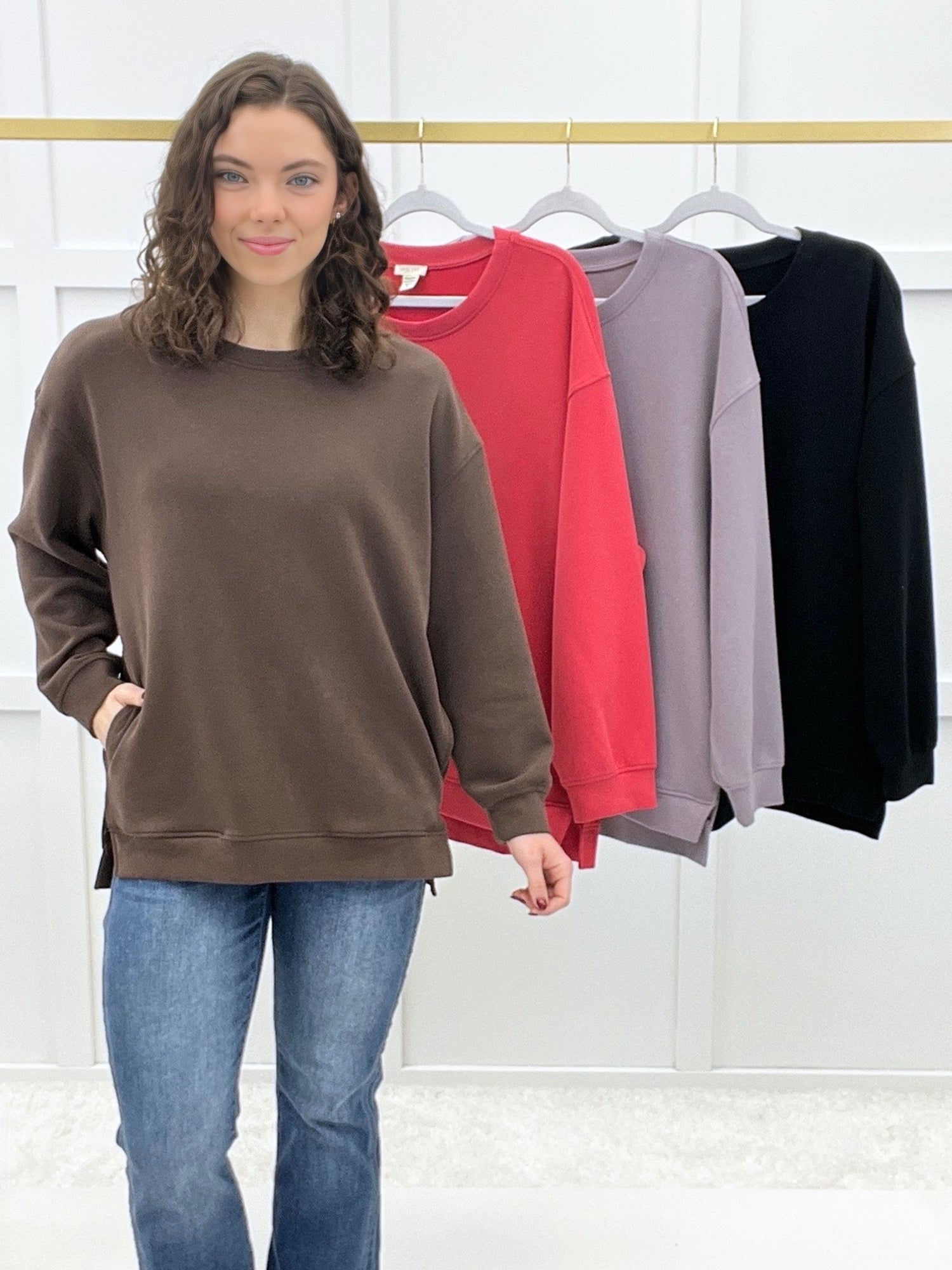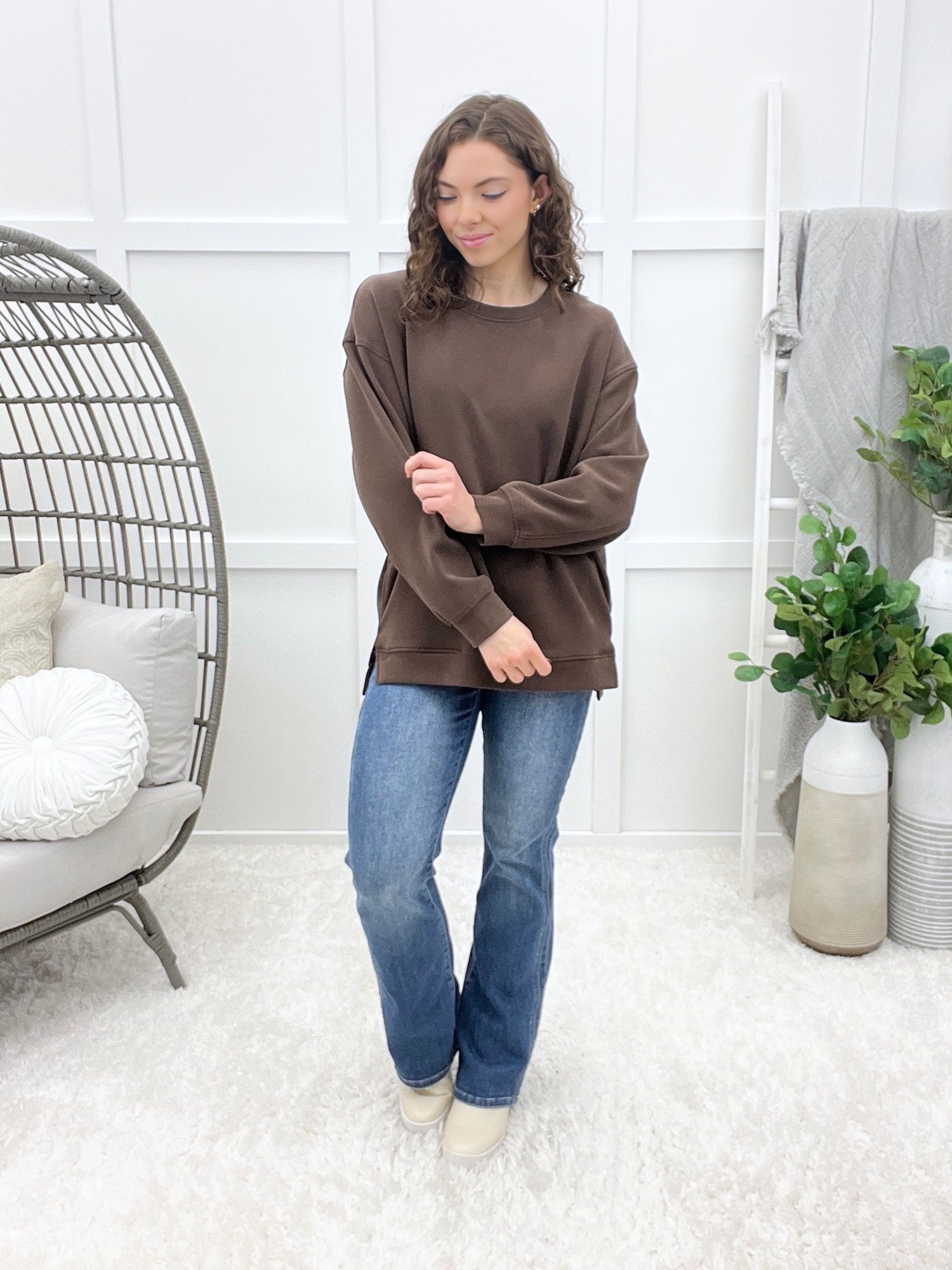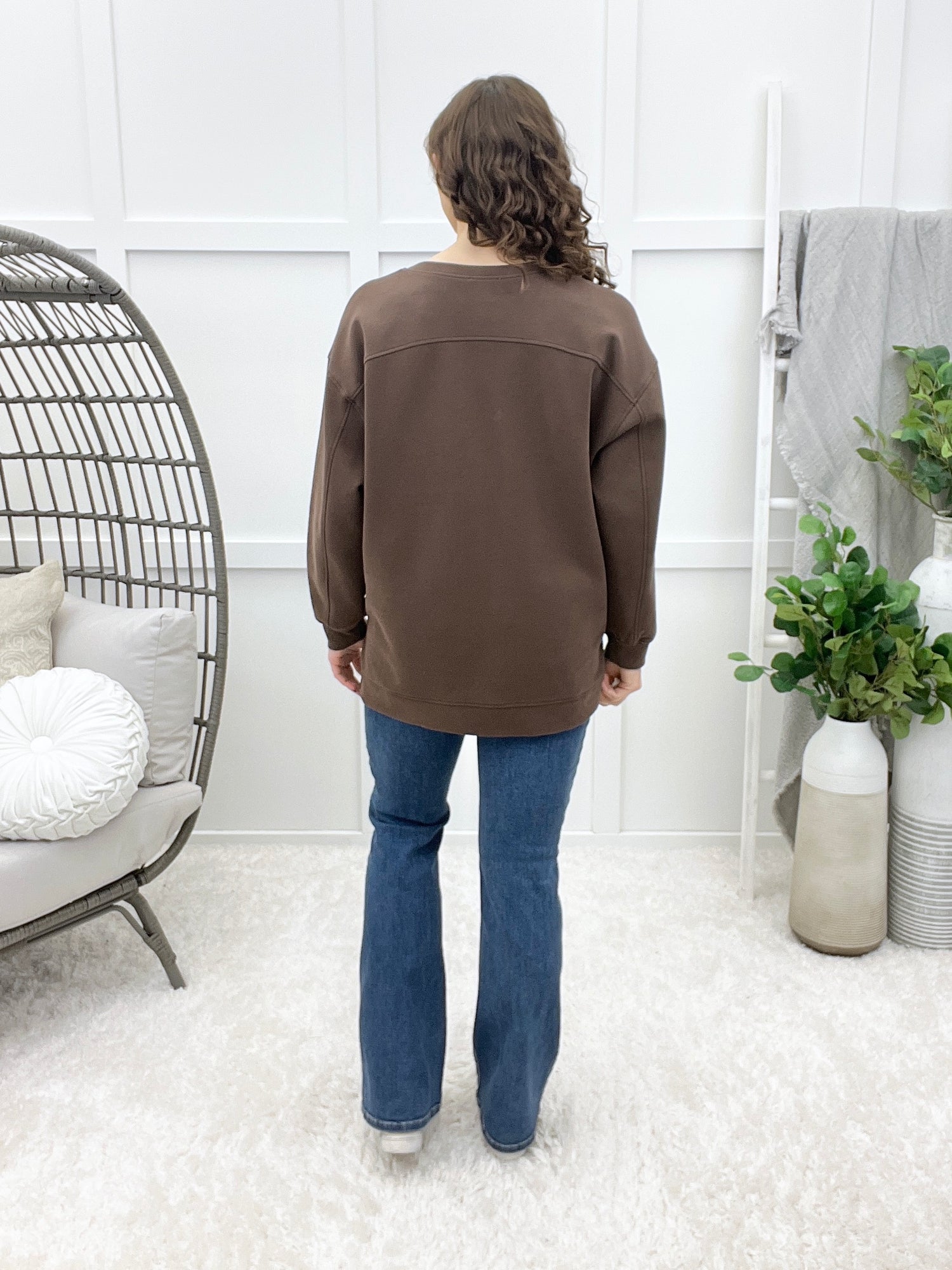 Effortlessly chic and oh-so-comfortable, this soft cotton modal long sleeve scuba top is your new go-to for everything from casual coffee dates to relaxed weekend brunches. The hidden pockets are a game-changer for keeping your essentials close without sacrificing style. Throw it on with jeans, layer it under a blazer, or pair it with your favorite skirt—this versatile piece works everywhere you want to go.