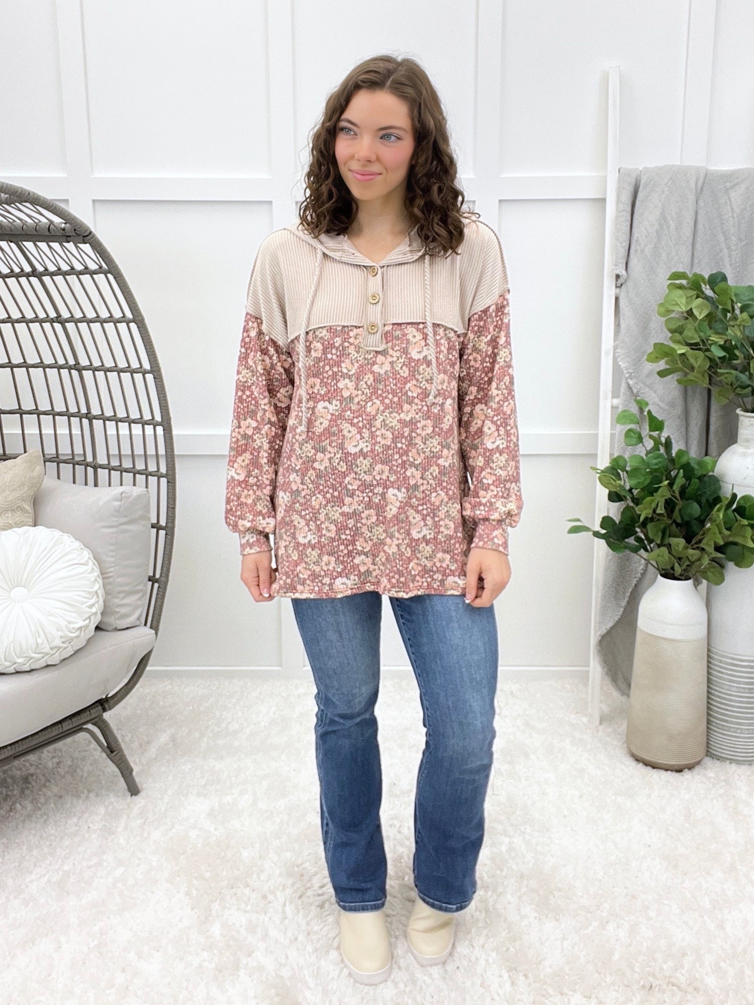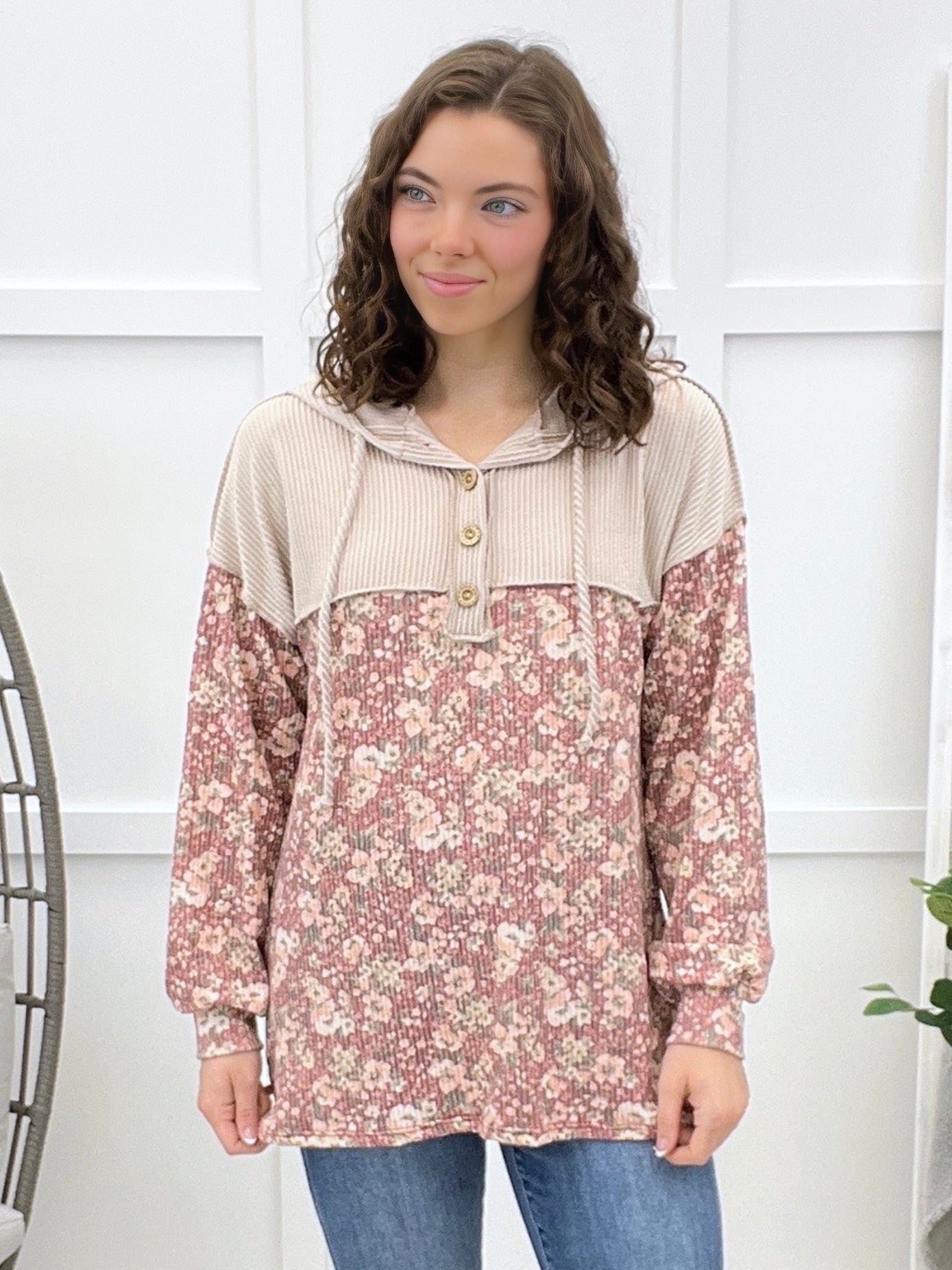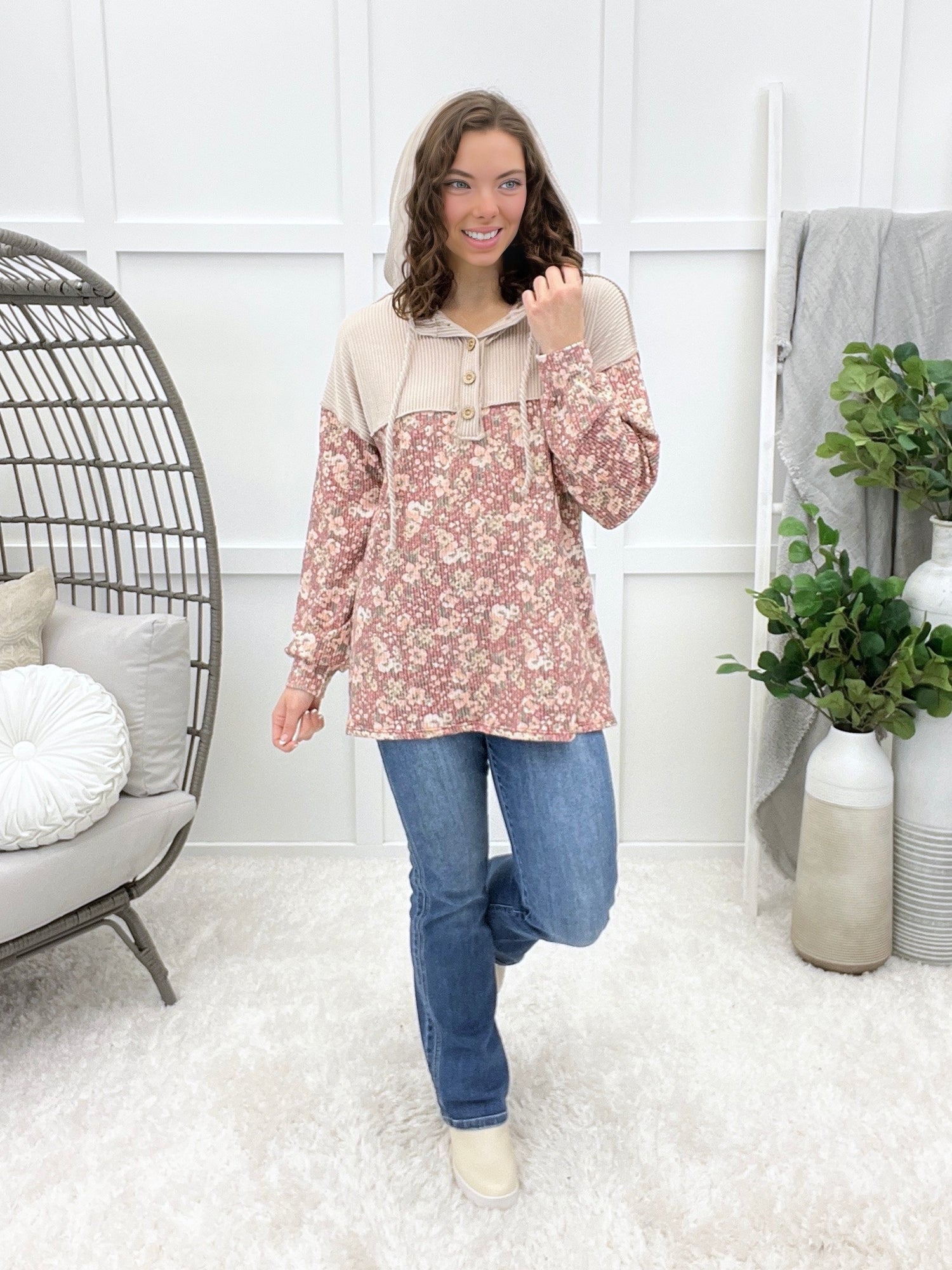 This hoodie is the perfect mix of cozy and chic! Its playful floral print and comfy hood will have you feeling relaxed yet ready for anything. Pair with leggings and sneakers for a cute and casual everyday look.