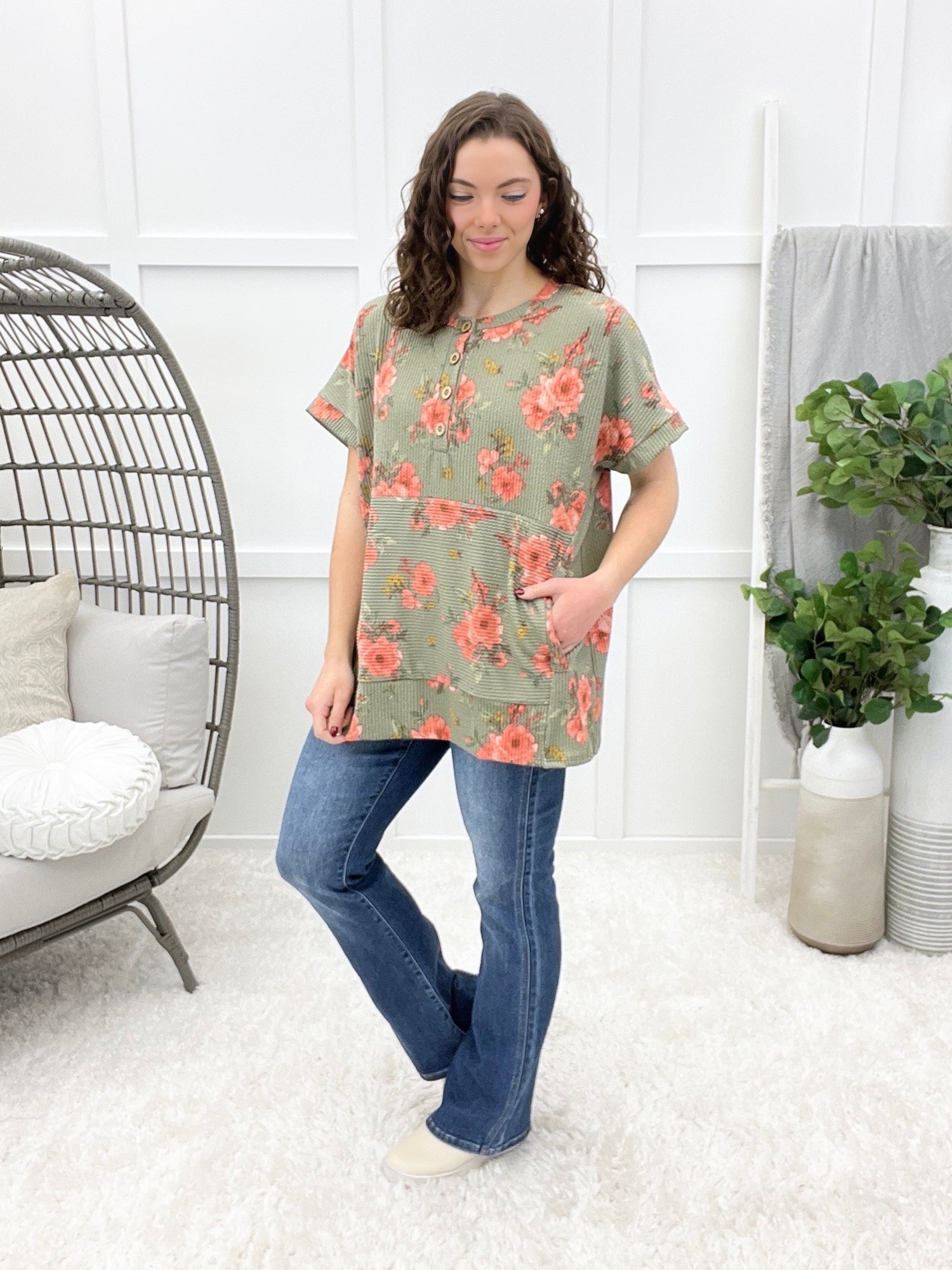 The Sweet Pea Go Round Top is your go-to piece for effortless style that works everywhere—from casual coffee dates to weekend brunches and breezy summer outings. Pair it with your favorite denim, linen shorts, or a flowy skirt for a look that's both comfortable and put-together. Layer it under a lightweight cardigan or denim jacket when the temperature drops, and you've got a versatile staple that'll have you reaching for it all season long.